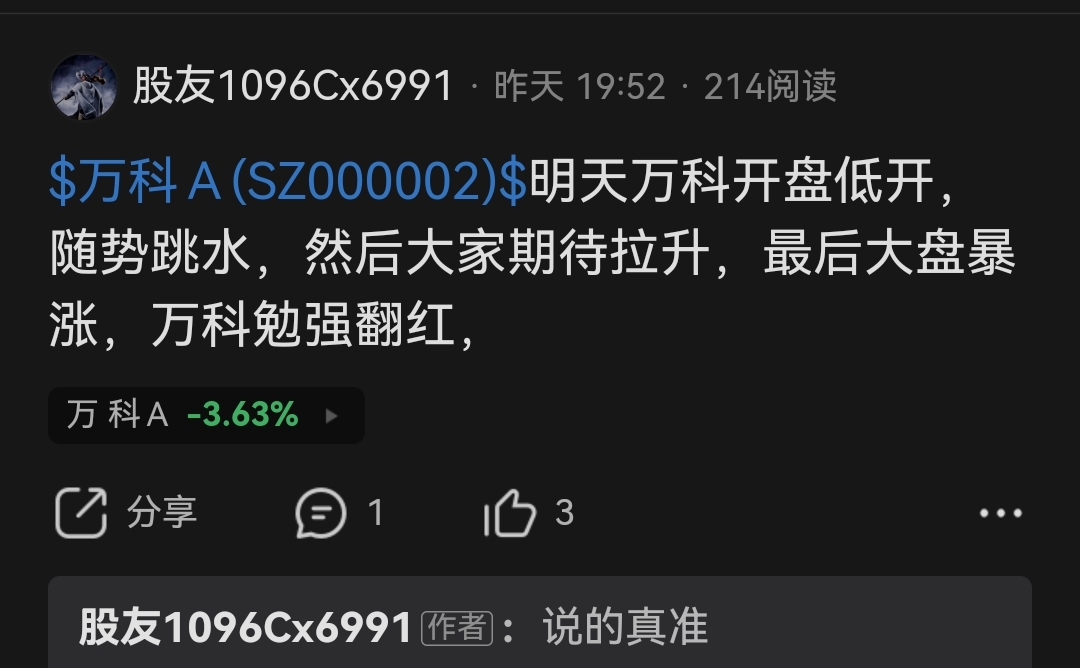 温馨提示: 1.根据《证券法》规定,禁止编造、传播虚假信息或者误导性信息,扰乱证券市场;2.用户在本社区发表的所有资料、言论等仅代表个人观点,与本网站立场无关,不对您构成任何投资建议。用户应基于自己的独立判断,自行决定证券投资并承担相应风险。《东方财富社区管理规定》