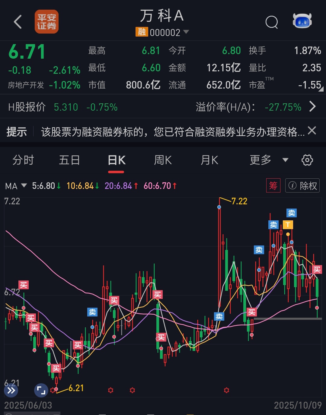 $万 科A(SZ000002)$ 做T难道不香吗?
