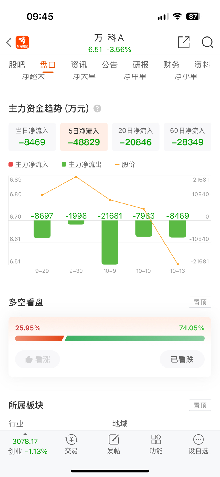 $万 科A(SZ000002)$ 醒醒,看看5天的主力资金就知道要大跌了