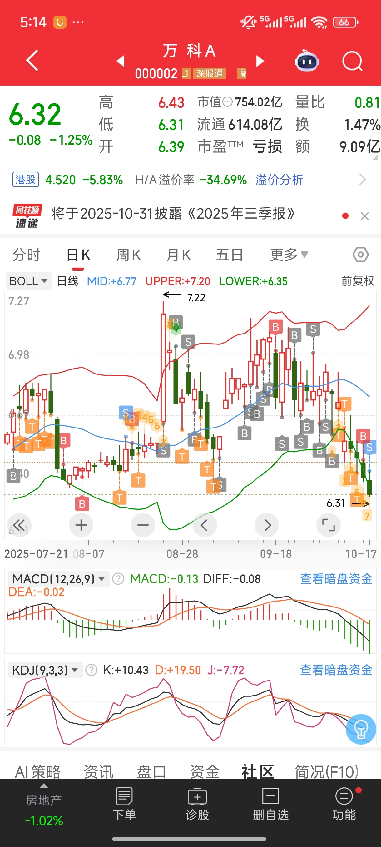 $万 科A(SZ000002)$ 万科下周补跌再接回来