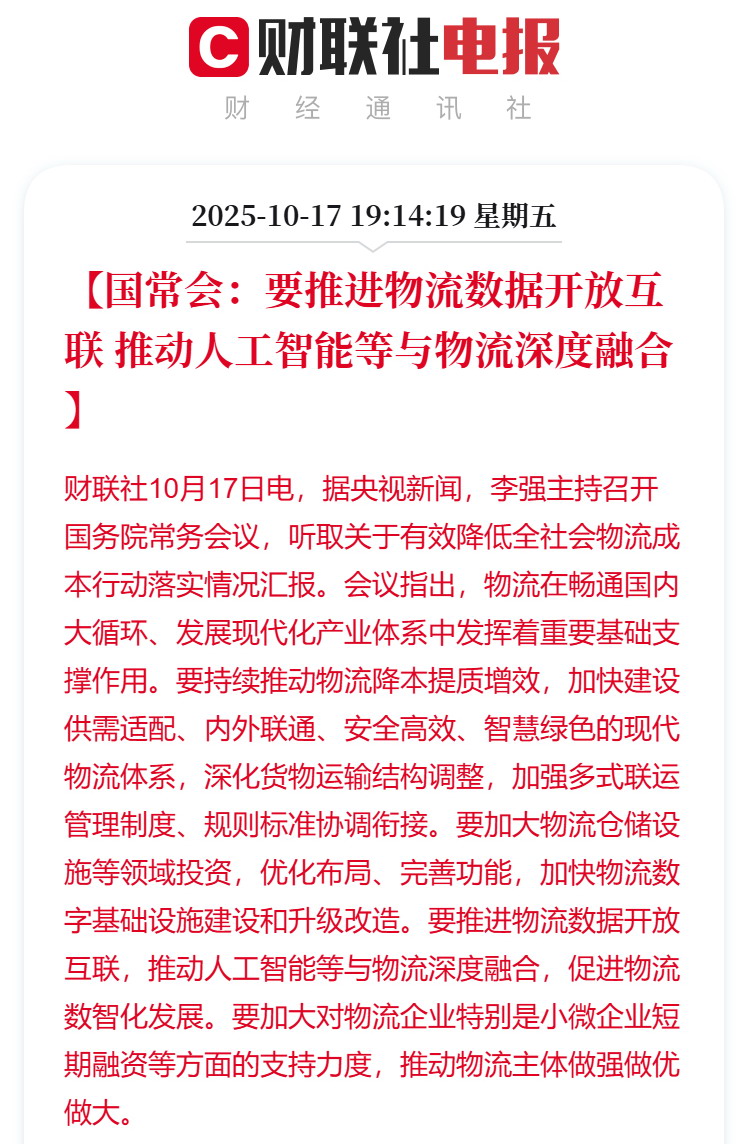 10.17会议明确要求推动物流企业数智化高质量大发展,直接利好万科旗下的万纬物流!