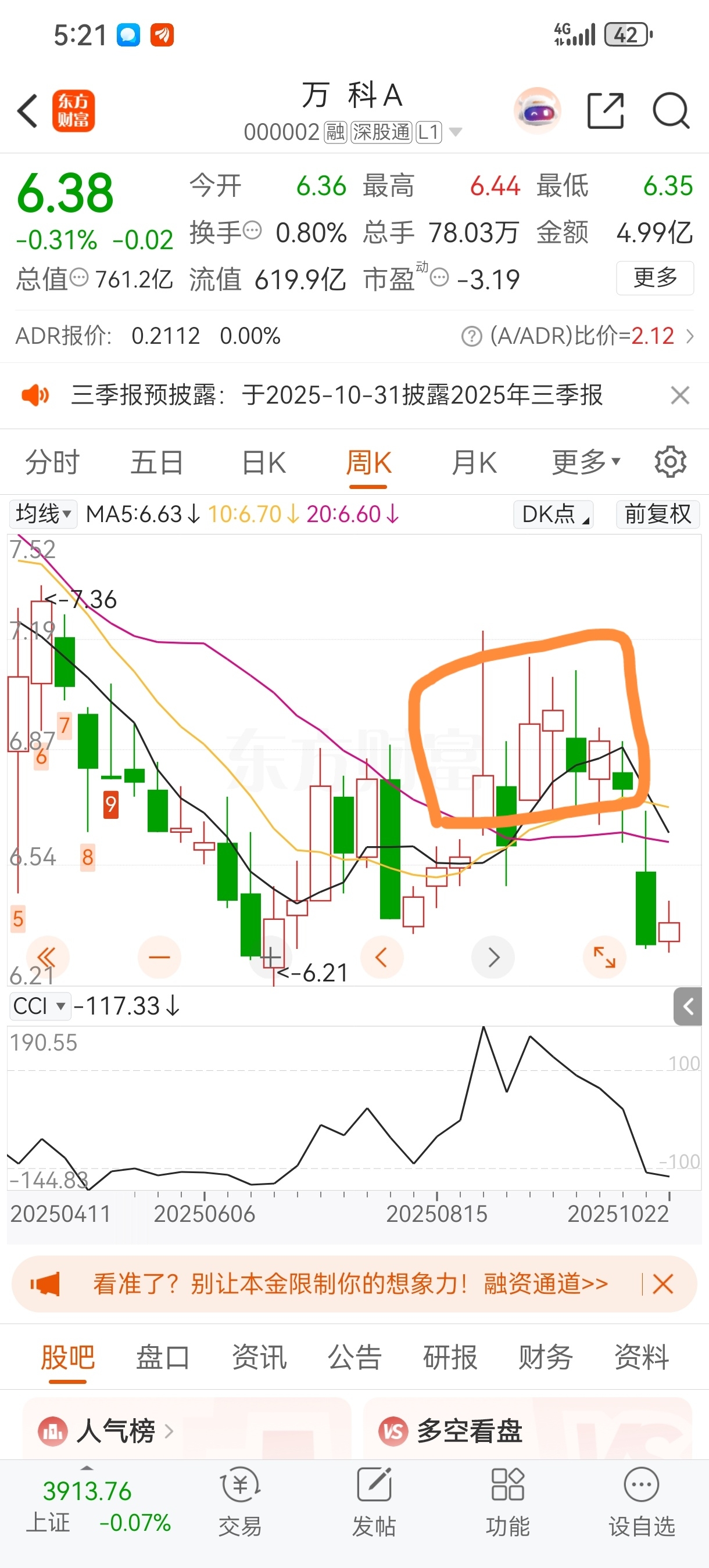 $万 科A(SZ000002)$ 这一片套牢盘不可能涨,必须再来的深跌还能涨