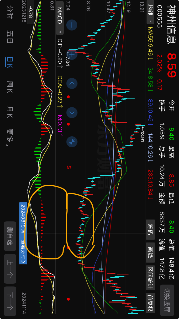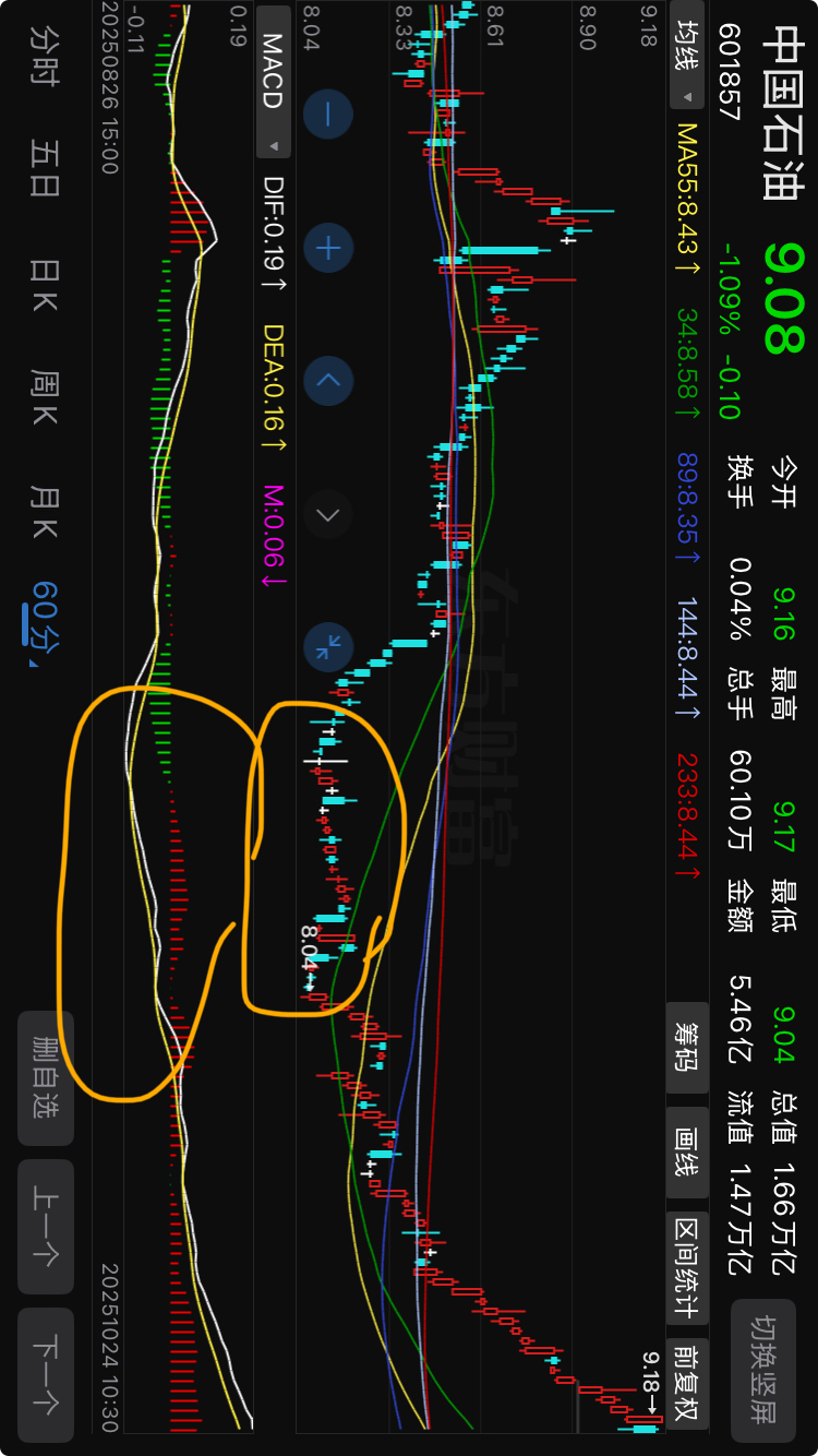 60分钟级别从昨天中午开始进入筑底段的右半期——按“左侧下跌形成的类似均线态势”