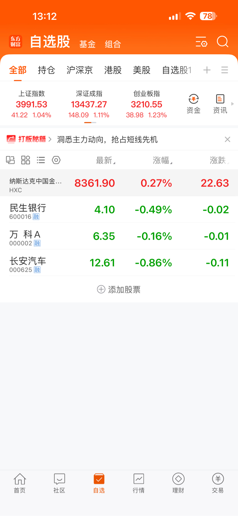 $万 科A(SZ000002)$ 了 大盘新高。自选全绿
