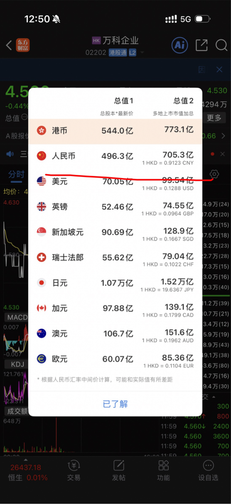 $万 科A(SZ000002)$ $万科企业(HK|02202)$ 万科H已不足500亿rmb