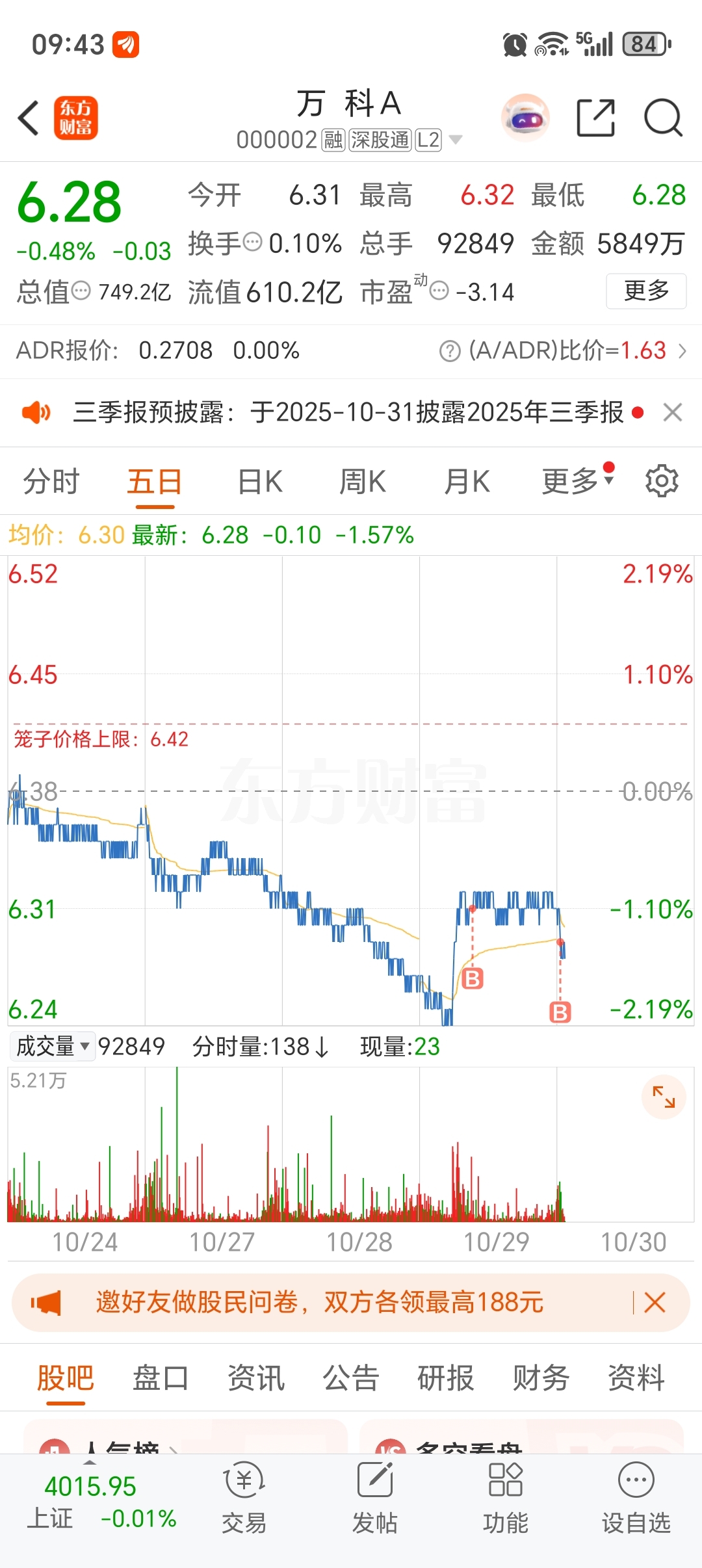 $万 科A(SZ000002)$ 已全仓,熬呗,4000多点了,唉,弱爆了