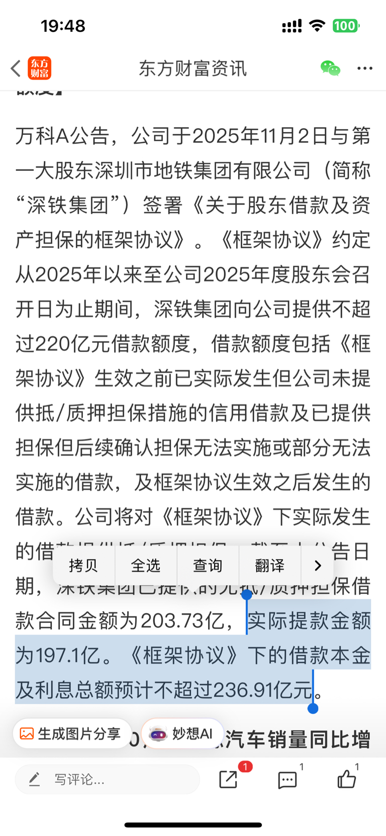 $万 科A(SZ000002)$ 这不是利空吗,意思是最多只能再借20亿