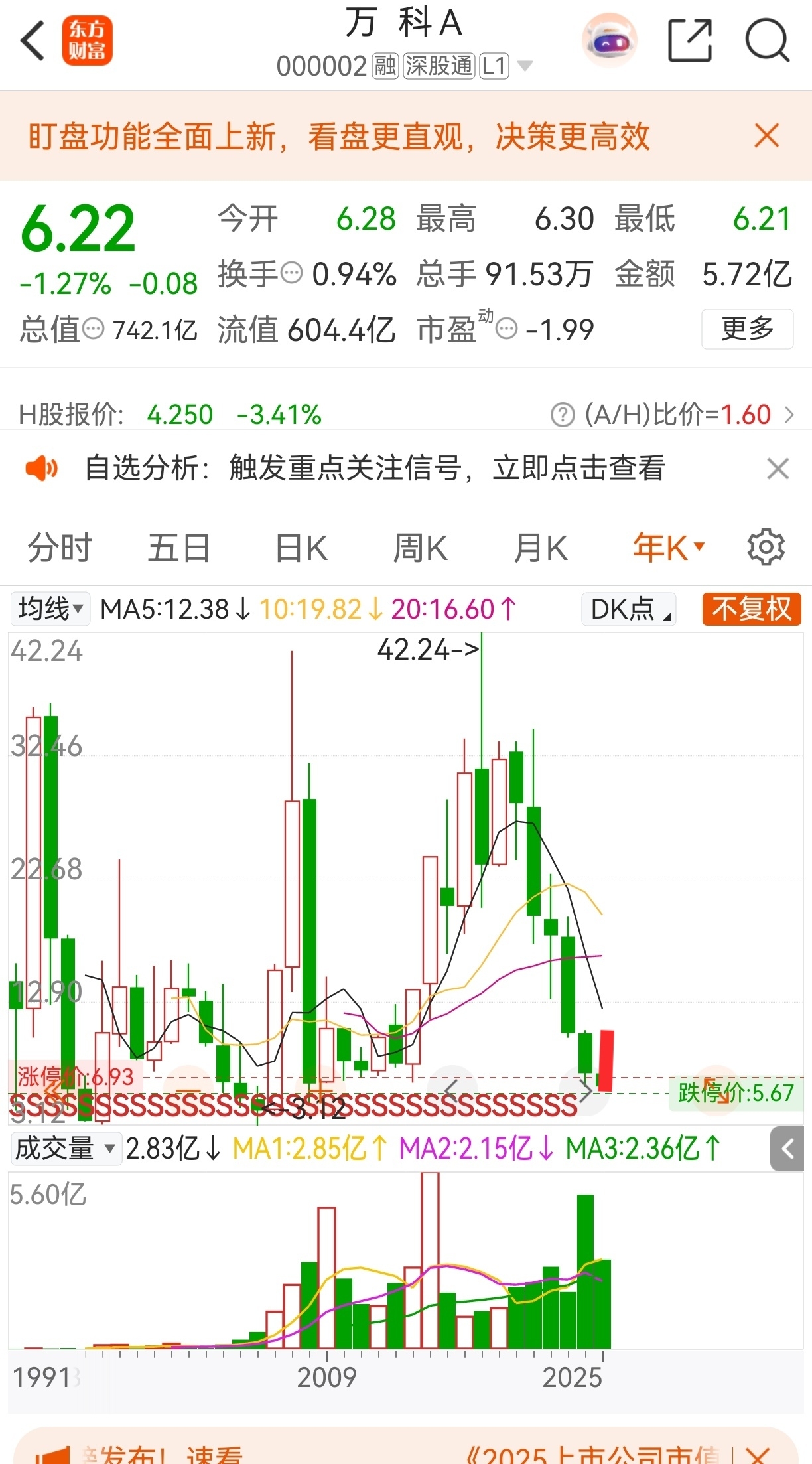 $万 科A(SZ000002)$ 搞不好,今年年K线就是红色的。