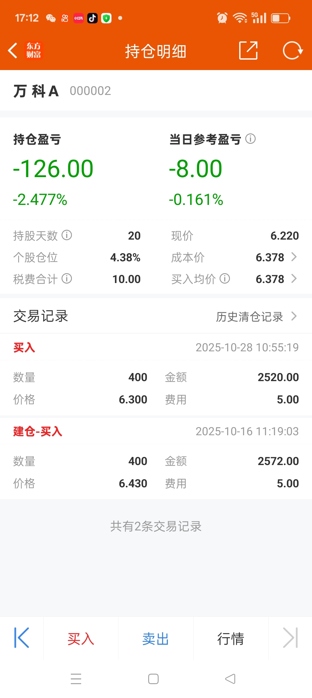 拿了5千元来玩万科这次被套住了,总计还是赚了一点的,现在房地产下行不敢买太多。