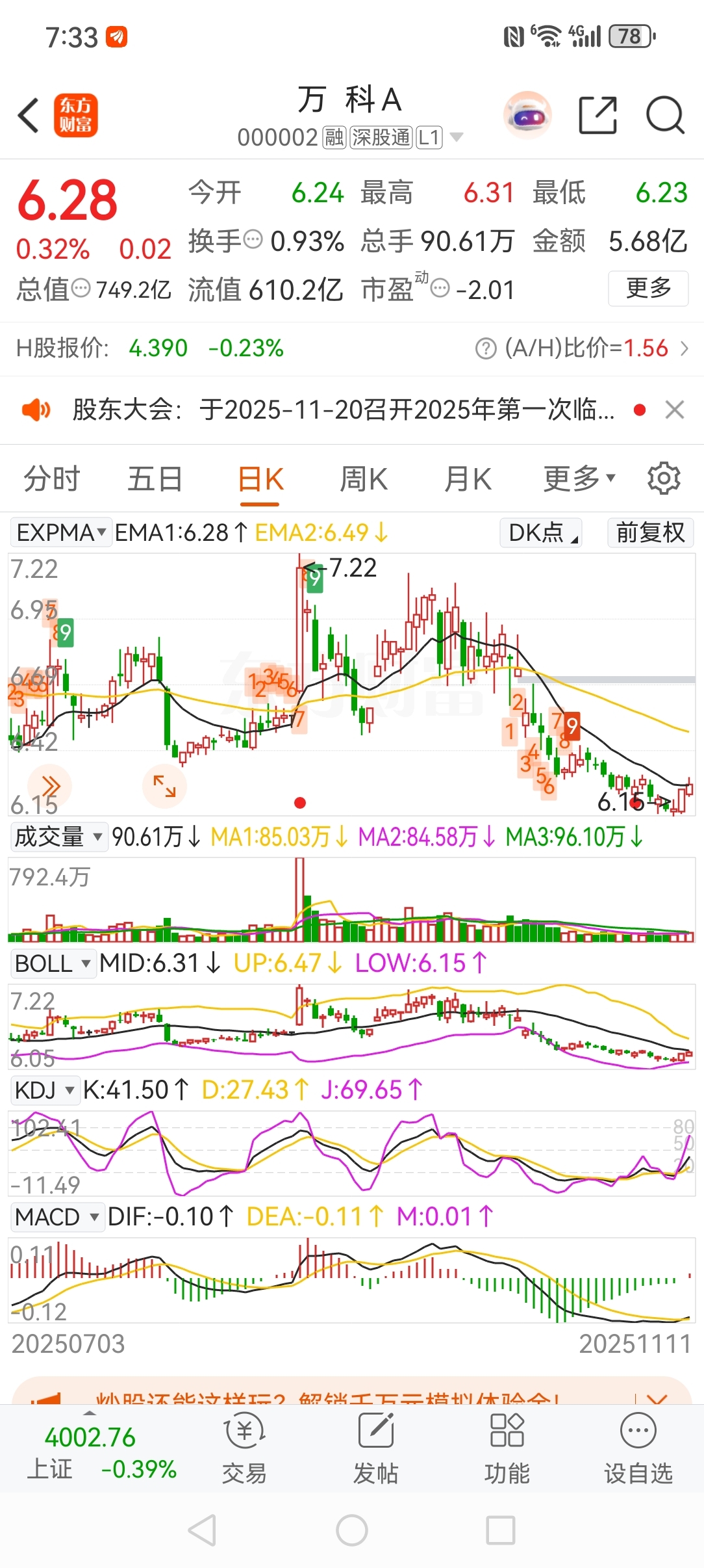 跌不动了那么涨起来啊。黄线才是关健6.49元,