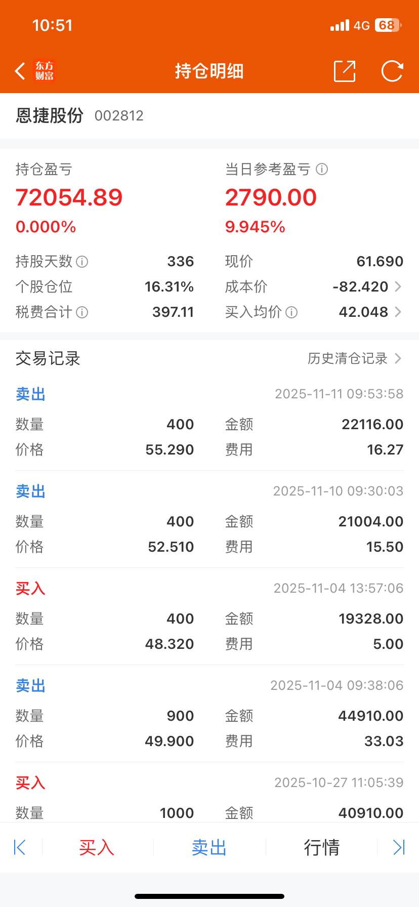 卖出资金全买万科,真是亏