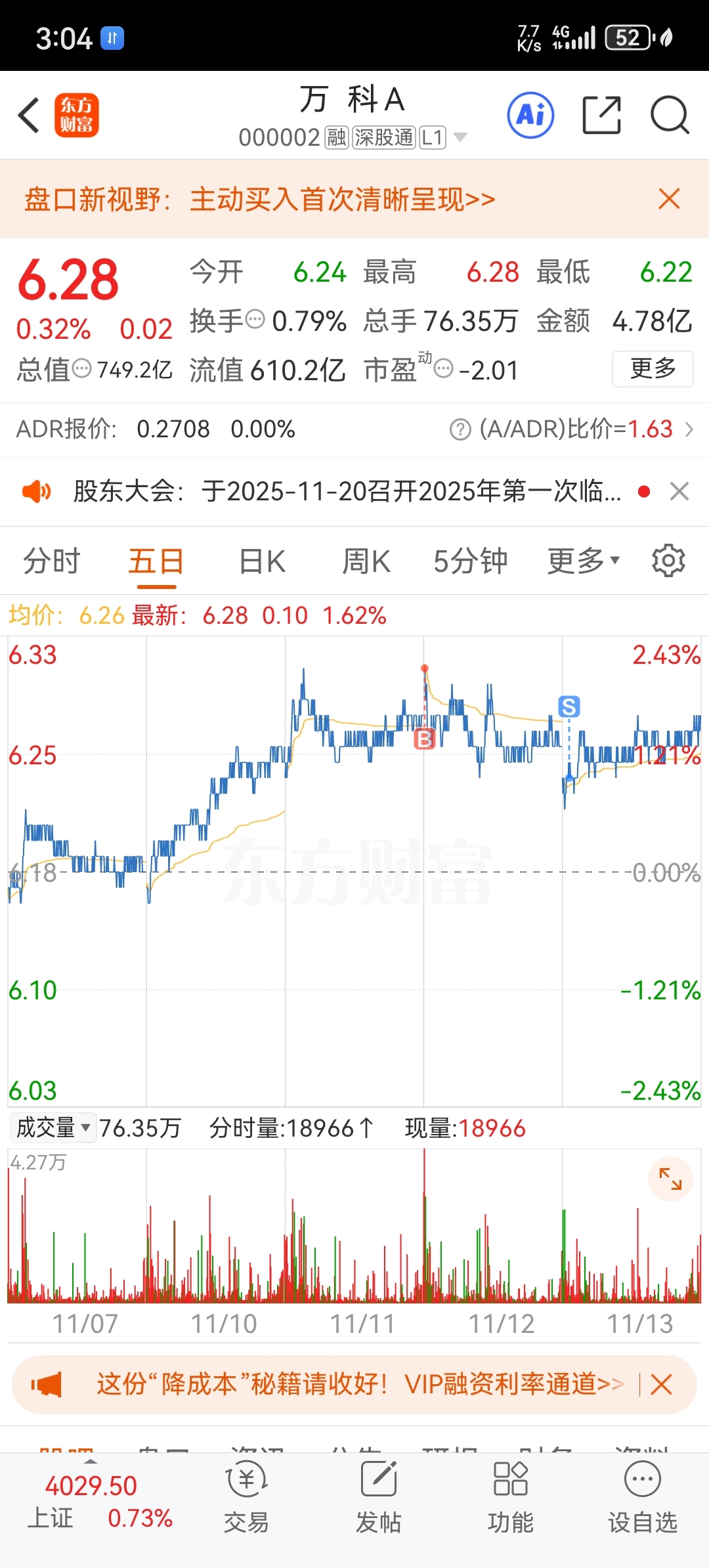 $万 科A(SZ000002)$ 做空失败