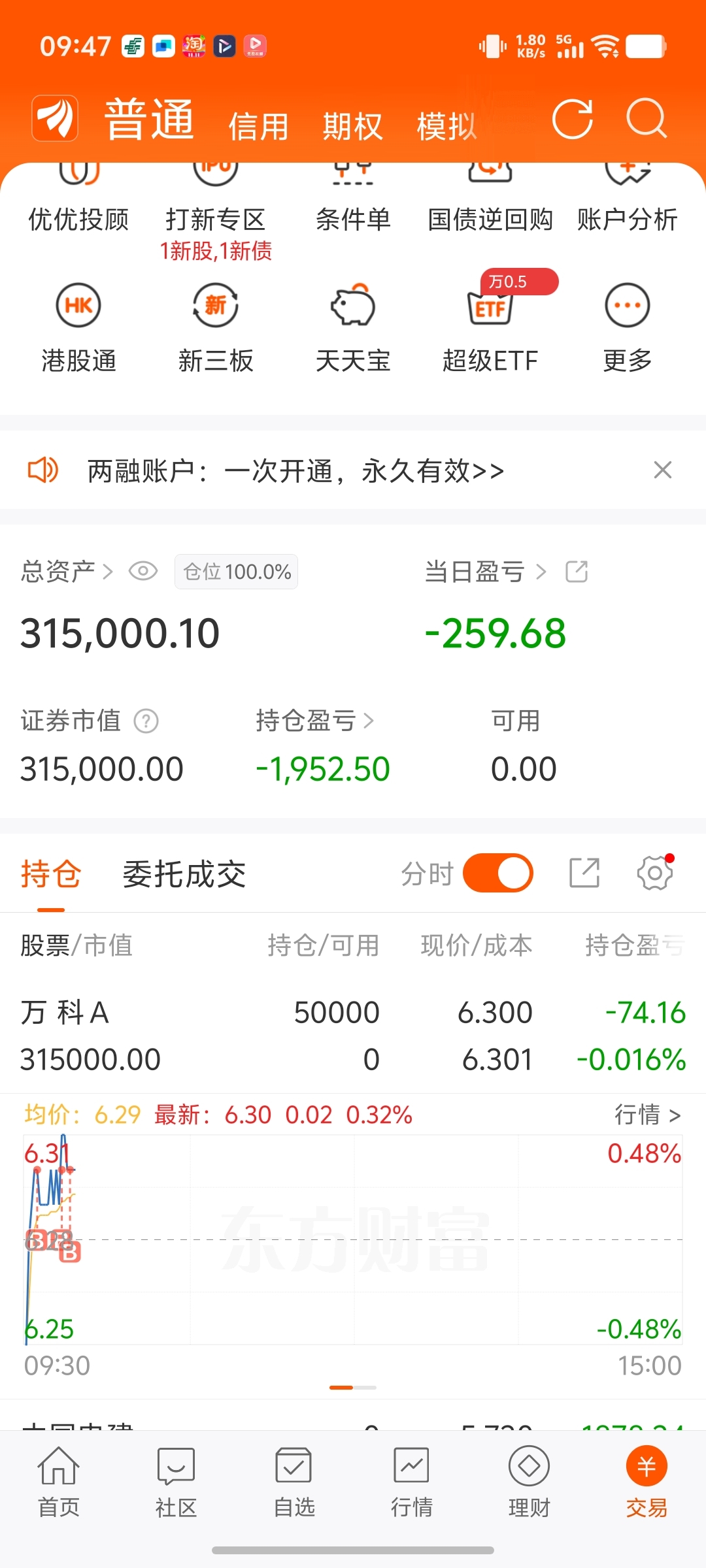 $万 科A(SZ000002)$ 底部金叉,买买买,先搞个五万股