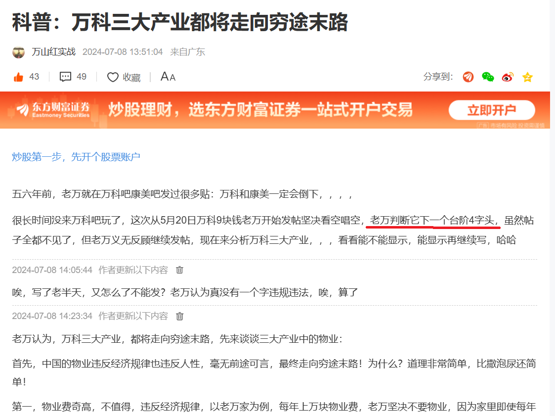 两年来,老万最少在万科吧说过十次,万科下一个台阶4字头,现在仍然维持此判断不变。