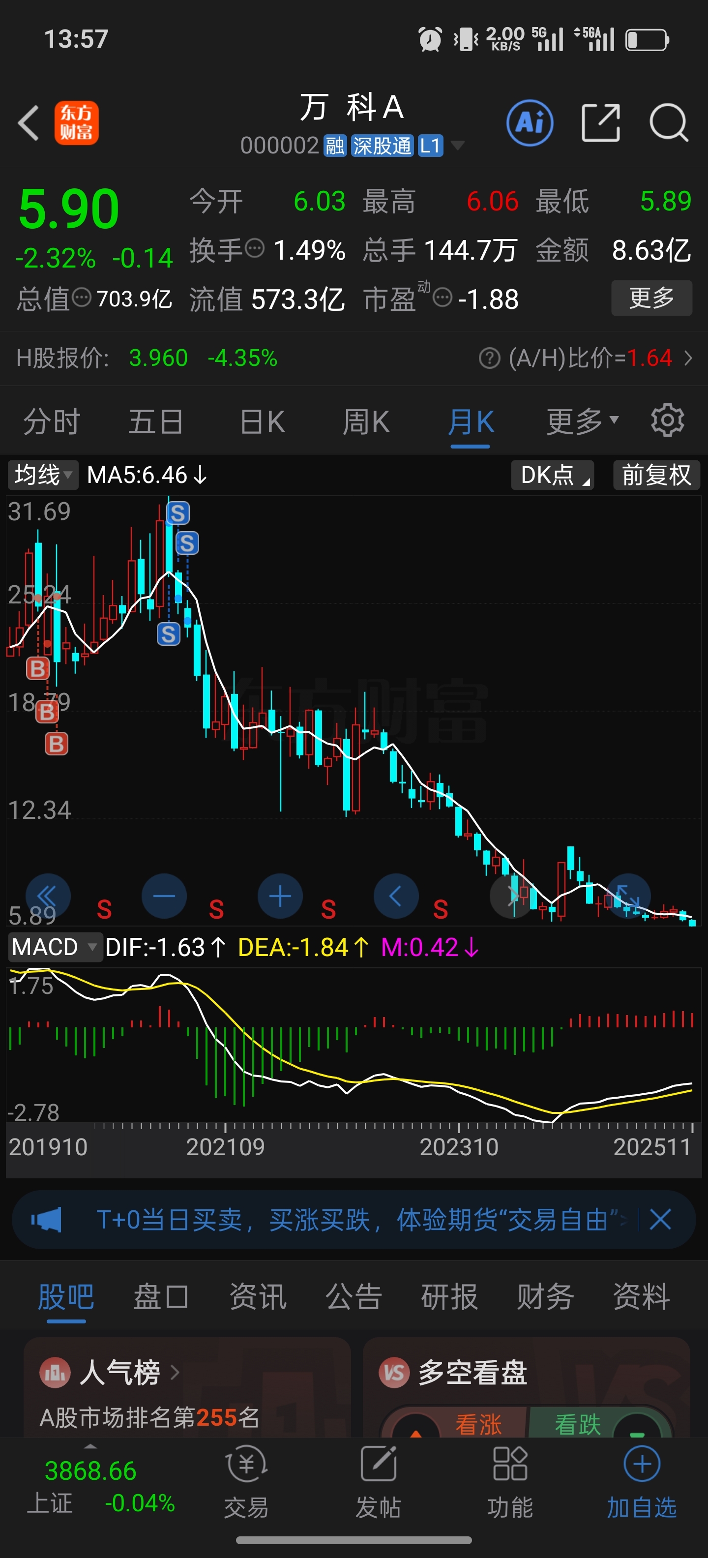 $万 科A(SZ000002)$ 能逃次顶,真的一辈子一次就行了。