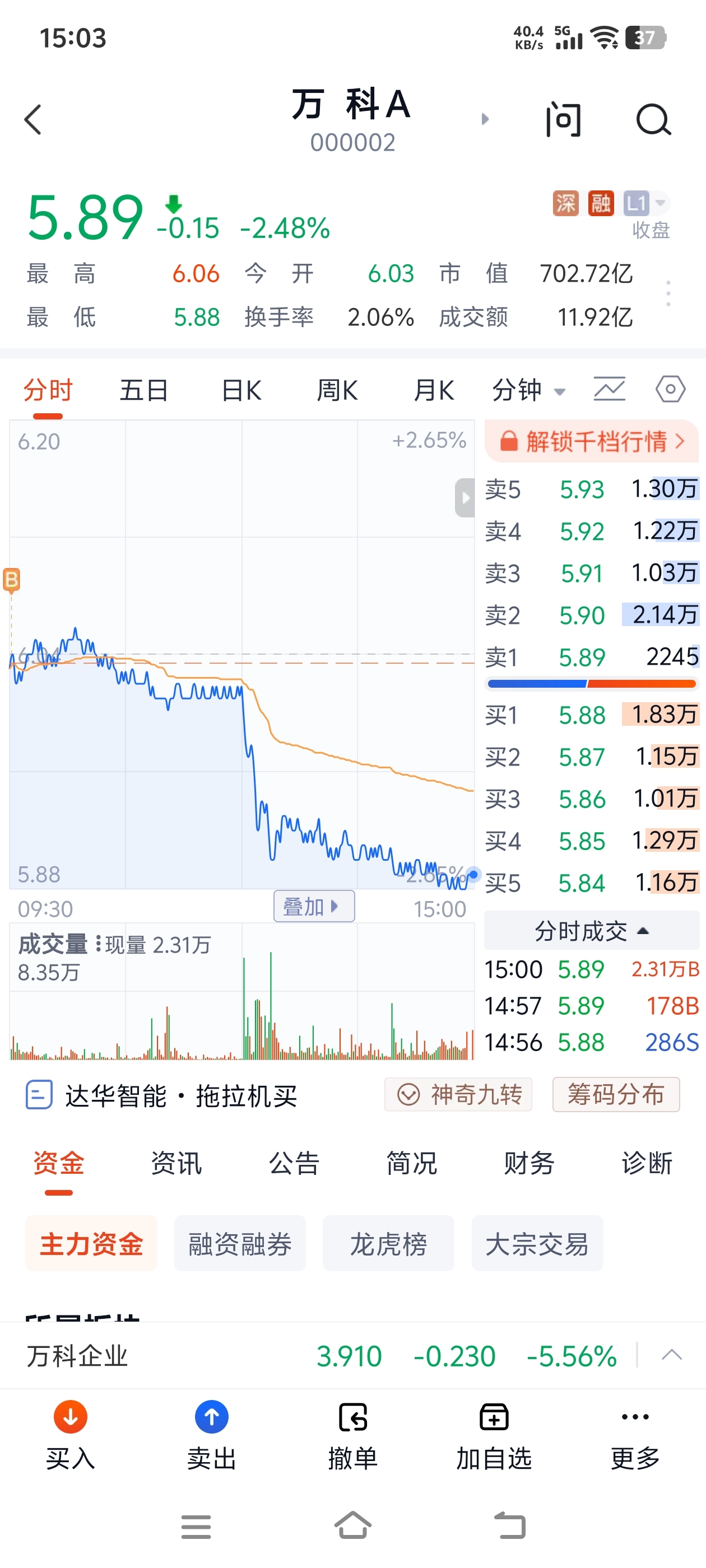 $万 科A(SZ000002)$ 今天一建仓就被套了,也是很无语