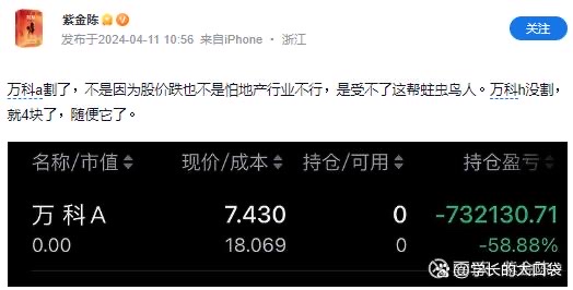 万科a割了,不是因为股价跌也不是怕地产行业不行,是受不了这帮蛀虫鸟人。万科h没割