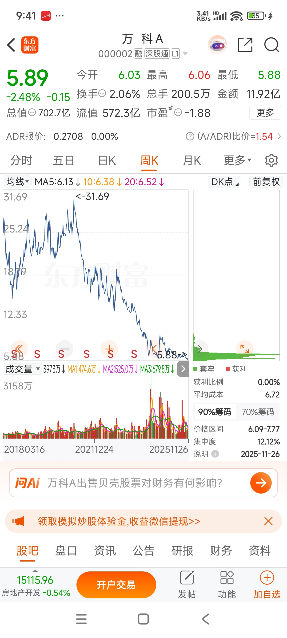 $万 科A(SZ000002)$ 从最高点腰斩,腰斩,再腰斩