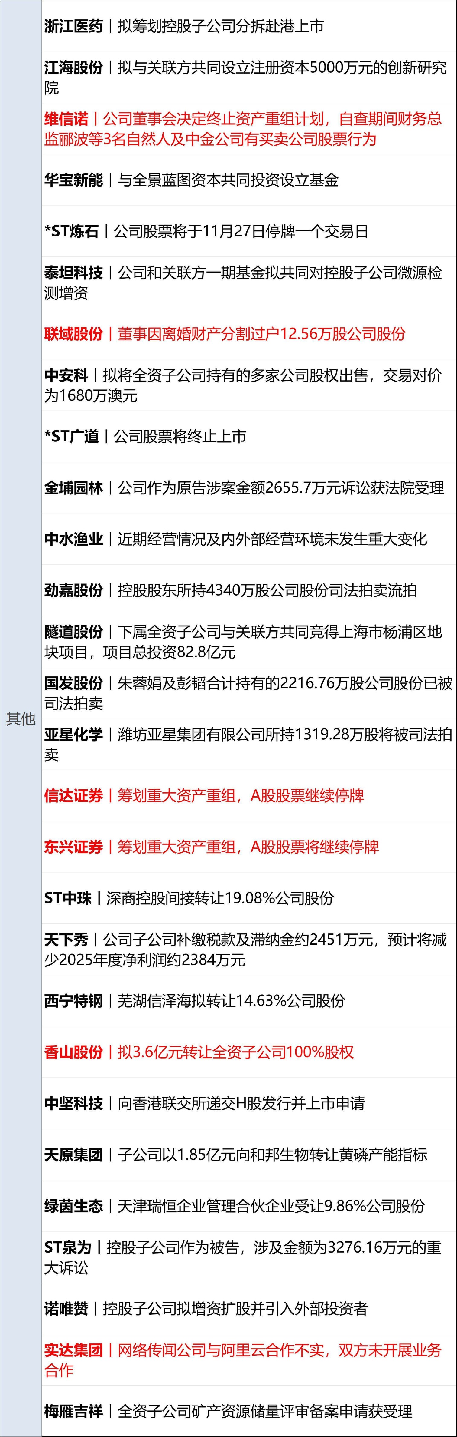 恒大集团:11月26日,香港高等法院批准处于清算状态的中国恒大集团变更禁制令申请,允许其在泽西岛、直布罗陀、加拿大及新加坡四地,对许家印前妻丁玉梅提起司法程序,强制执行价值超2.2亿美元(约合人民币15.58亿元)的境外资产。香港高等法院审理查明,丁玉梅在指定司法管辖区的资产分布集中且规模庞大:加拿大皇家银行账户存有1亿加元,嘉盛莱宝银行新加坡有限公司银行账户存有7100万美元,瑞士银行(直布罗陀)有限公司银行账户资产达5760万美元,泽西岛巴克莱银行账户亦有67.5万英镑存款,四项资产合计超2.2亿美元。