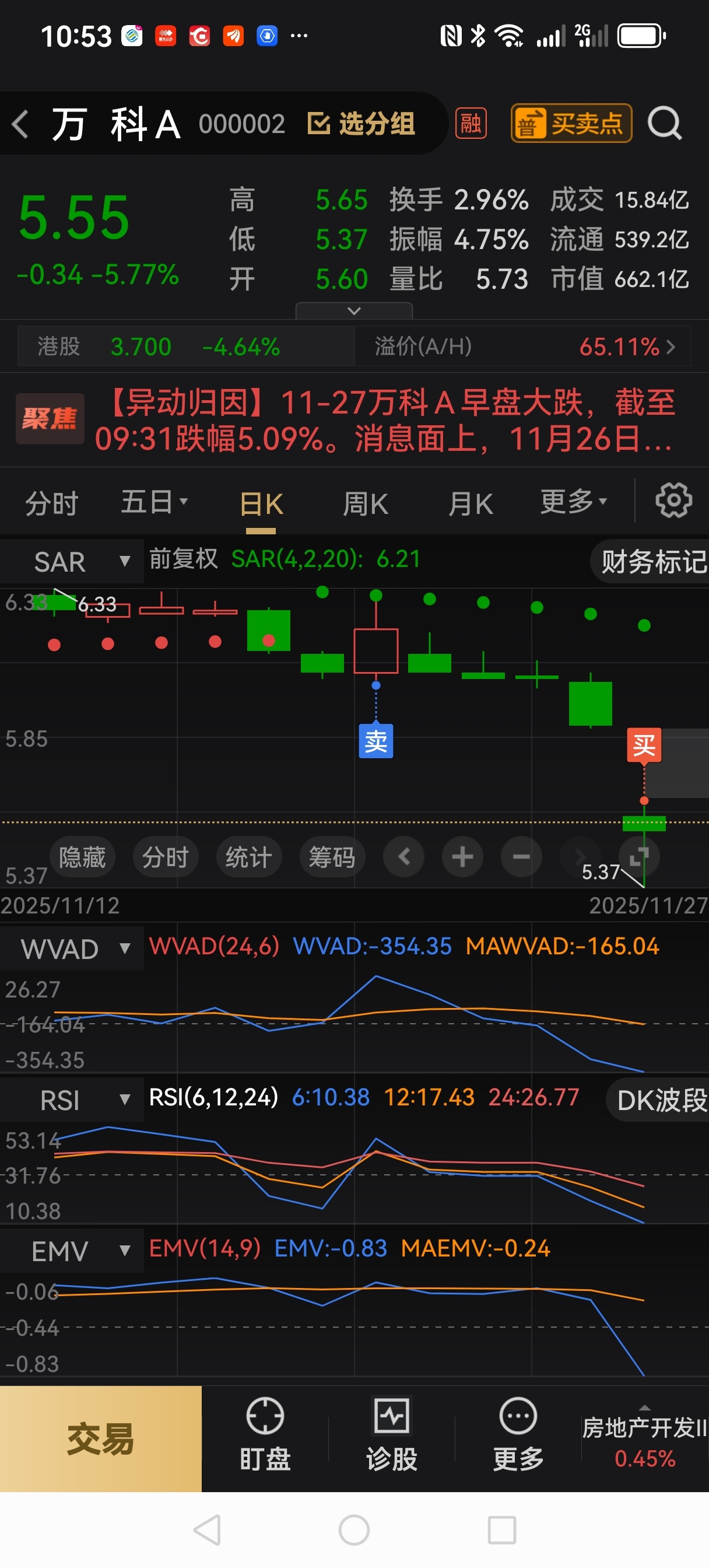 万科A,建仓6.31,割肉6.21。11月27号,已建仓5.53。
