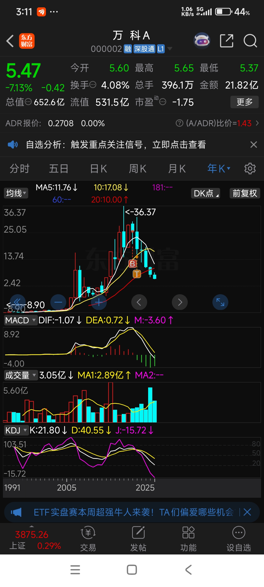 $万 科A(SZ000002)$ 那些人喊抄底的,自己看看吧,连跌六年,凭什么明天就起涨,我幸好早割肉了