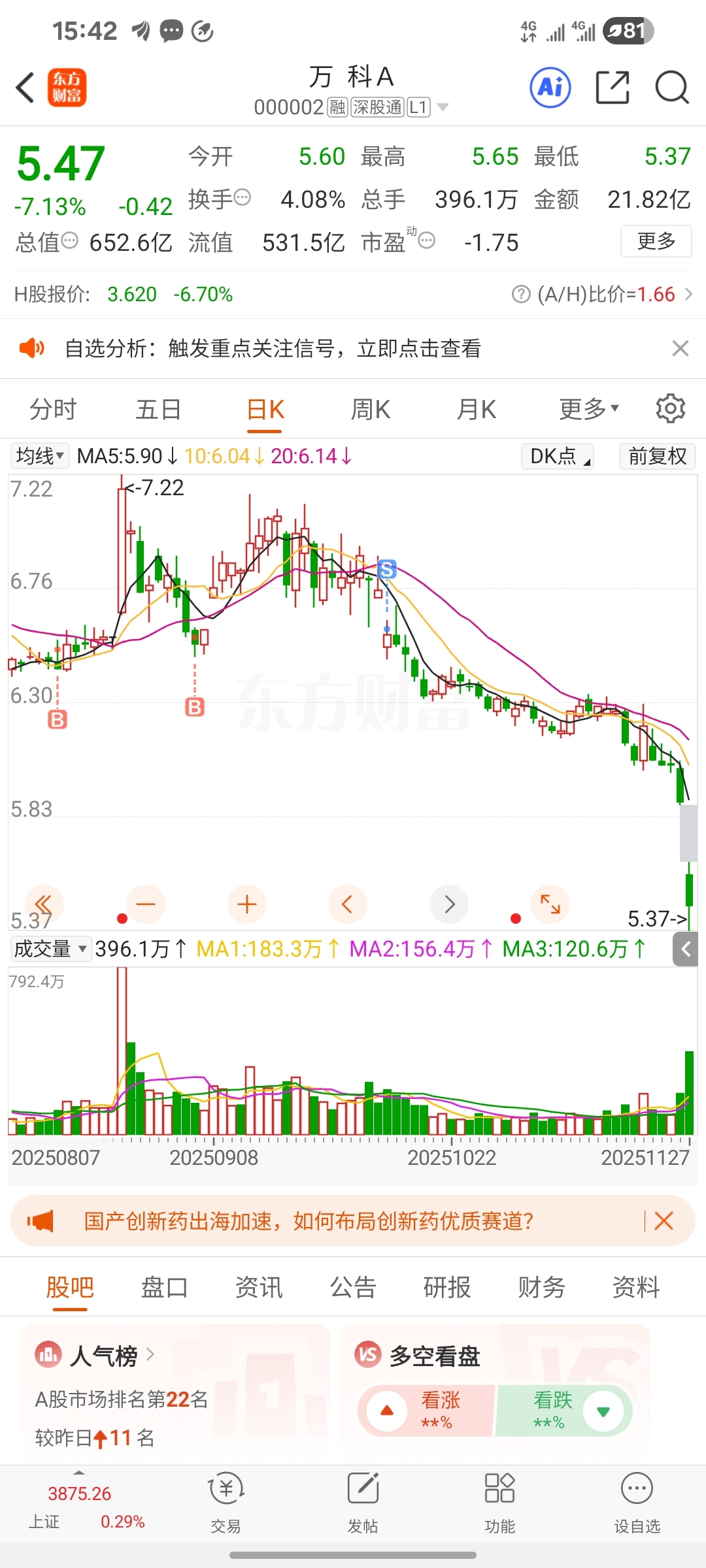 $万 科A(SZ000002)$ 拿过一段时间,房地产一言难尽