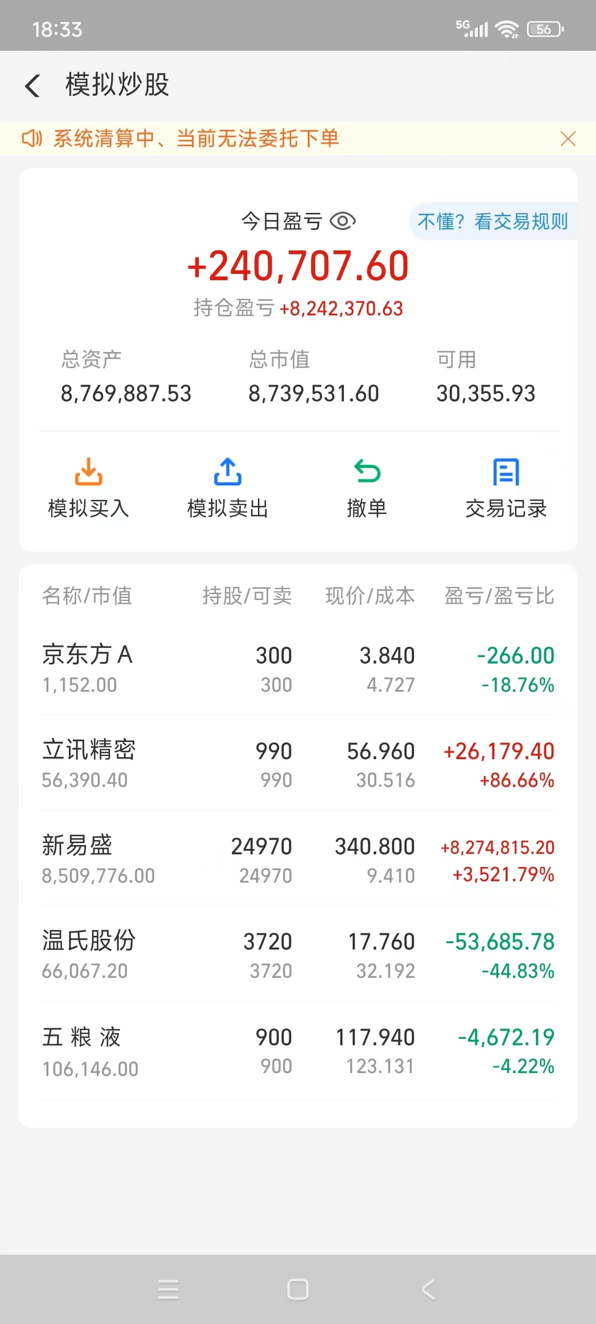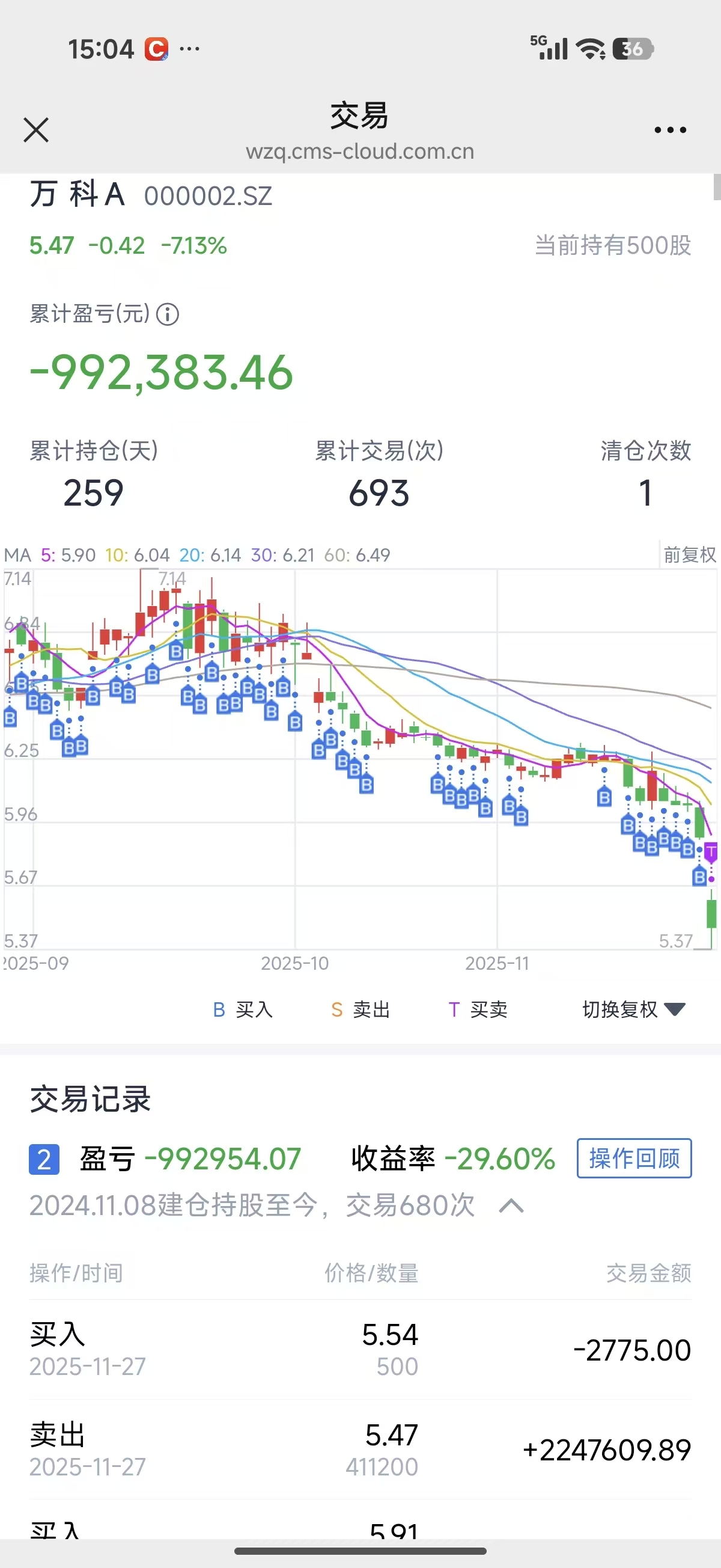 真实的万科掉了血亏100w模拟的另一个手机一直拿着老情人新易盛看都不看突然翻到涨