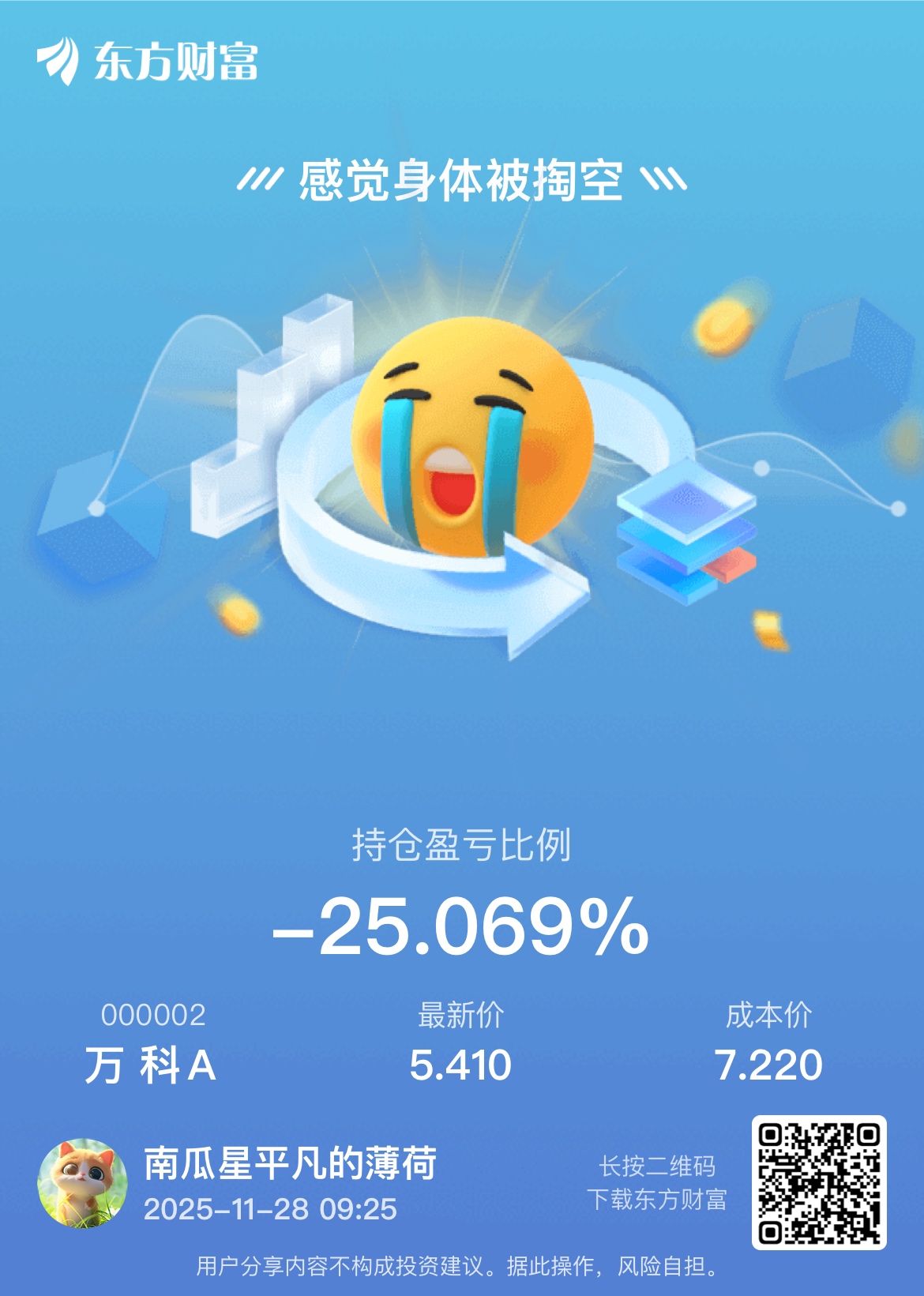 $万 科A(SZ000002)$ 7.22涨停买的,终于25个点了,草