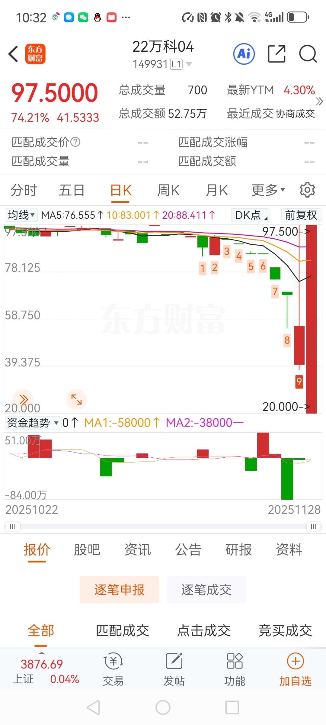 $万 科A(SZ000002)$ 这玩意几十万成交量,一下涨80%,一下跌80%。