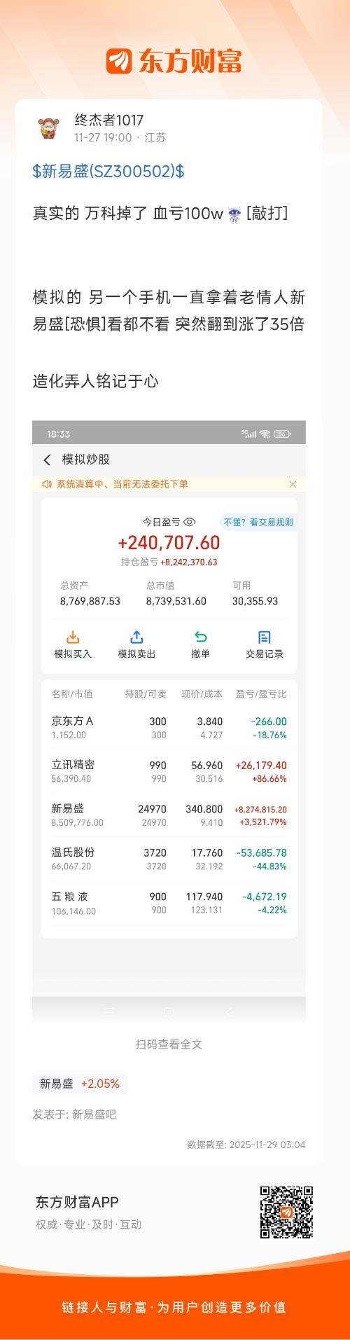 温馨提示: 1.根据《证券法》规定,禁止编造、传播虚假信息或者误导性信息,扰乱证券市场;2.用户在本社区发表的所有资料、言论等仅代表个人观点,与本网站立场无关,不对您构成任何投资建议。用户应基于自己的独立判断,自行决定证券投资并承担相应风险。《东方财富社区管理规定》