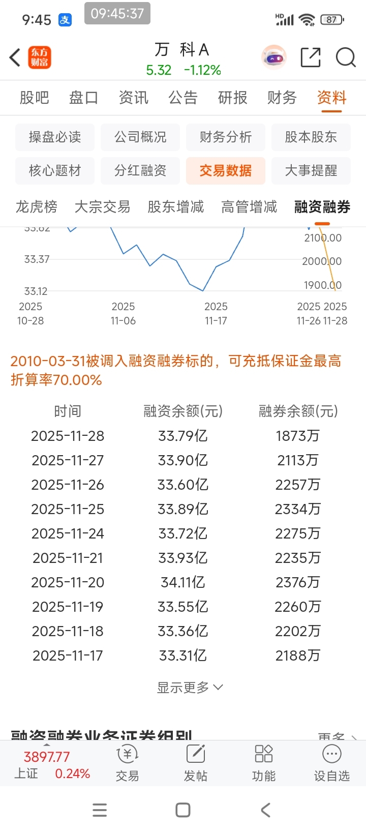 $万 科A(SZ000002)$ 个个都说自己做空赚钱,结果融券余额一直在降,事实如何已经昭然若揭了