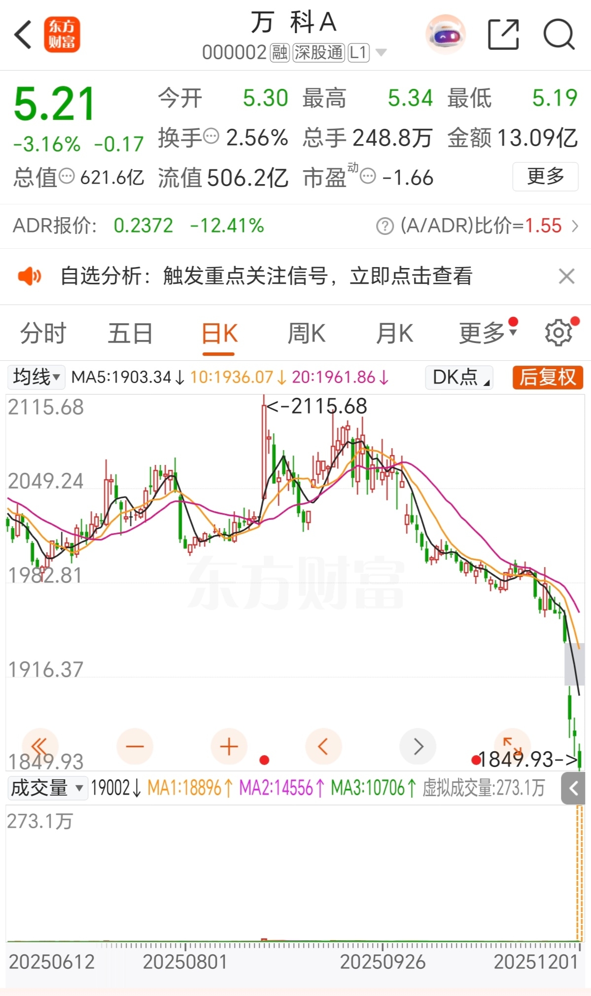 $万 科A(SZ000002)$ 后复权看到1849.93,30年上涨趋势未变,加仓持有