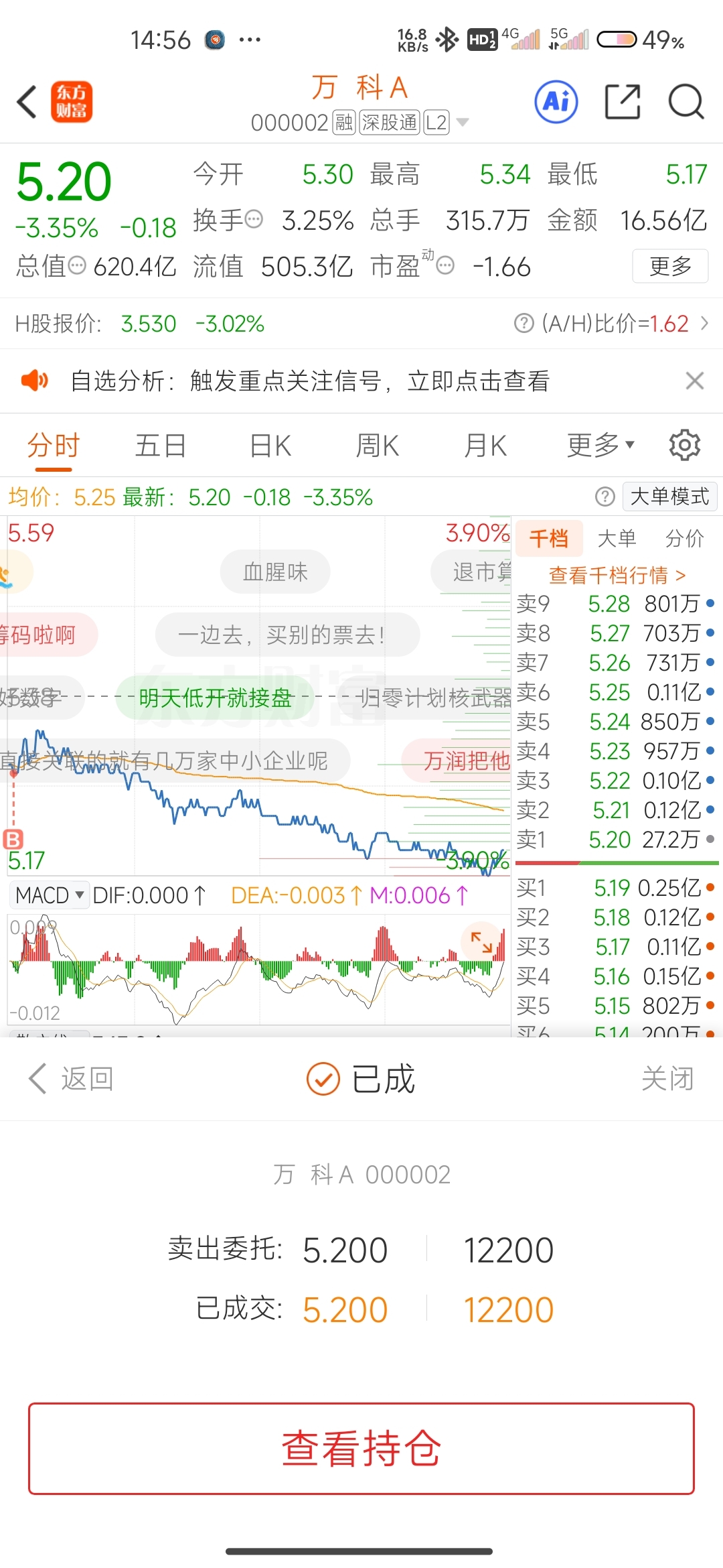 $万 科A(SZ000002)$ 苦瓜了,做T失败了,告诉主力先卖了