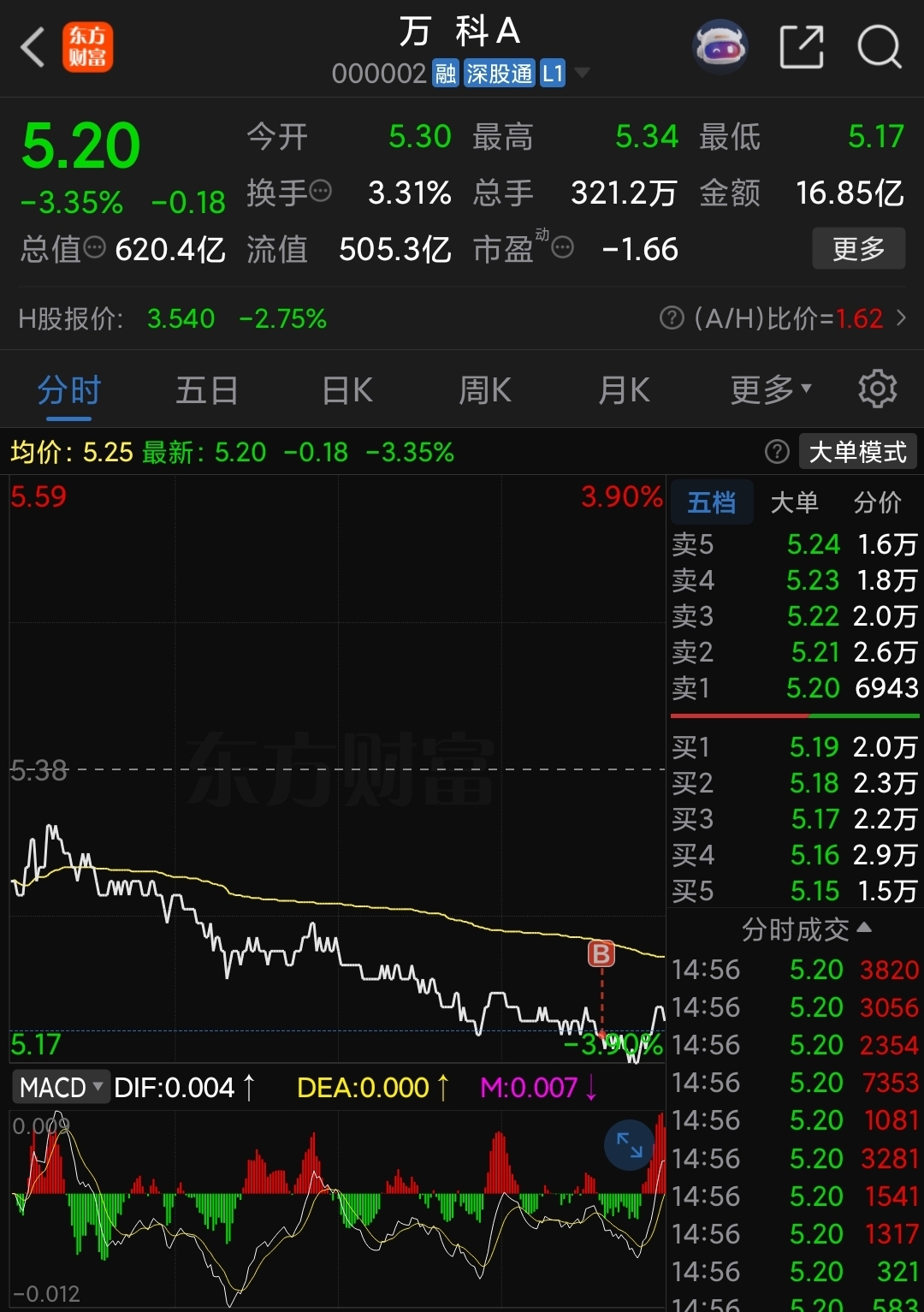 $万 科A(SZ000002)$ 没忍住,摸了下,明天就跑,求放过