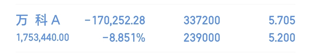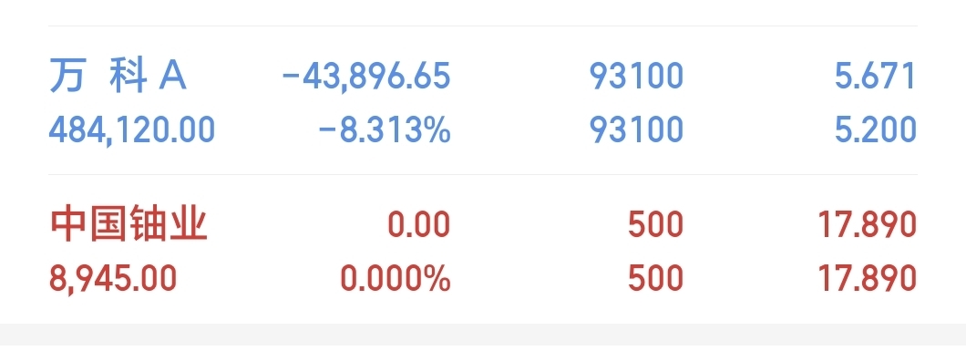 三个账户,都有万科,都亏麻了。唉,真的瞎了我的狗眼。