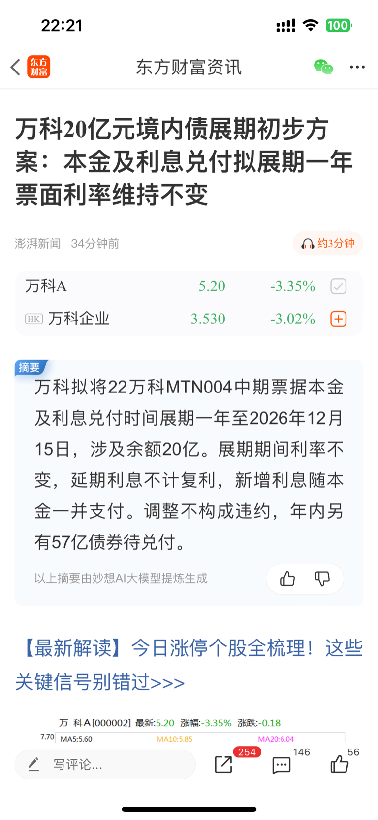 $万 科A(SZ000002)$ $招商蛇口(SZ001979)$ $保利发展(SH600048)$ #社区牛人计划# #万科遭遇“股债双杀”,偿债高峰期临近# #收盘点评# @东方财富创作小助手 @股吧话题