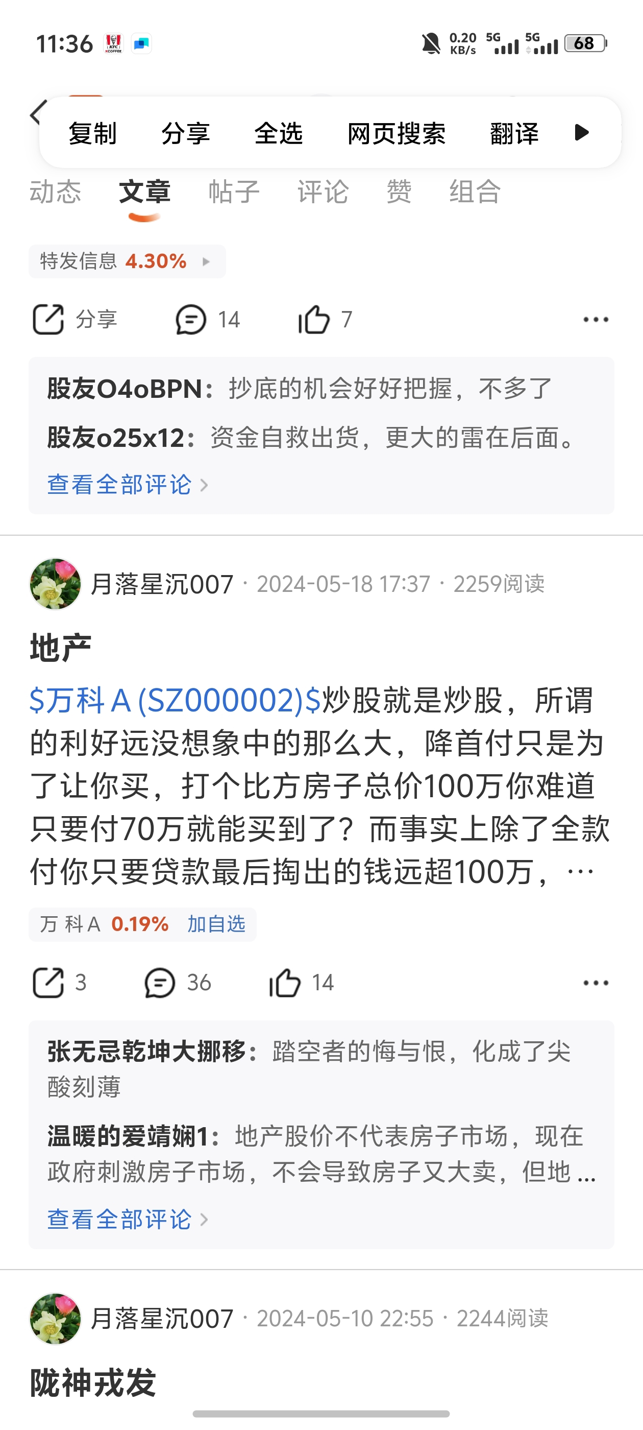 $万 科A(SZ000002)$ 万科碰都不能碰,你们想着抄底?我问一句最简单的,目前万科具备持续经营盈利的能力吗?一家还在化债的公司你们敢进来博弈什么买在恐慌时就挺搞笑的。地产这波回调周期远超各位想象,地产的烂摊子也远超各位想象,一栋楼盖几十层高我笑而不语,你住进去的时候是新的但是30年后你房贷还没还结束房子已经老的不像样了,老旧小区的改造谁出资