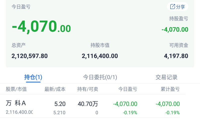 $万 科A(SZ000002)$ 最少也要拿两礼拜嘛