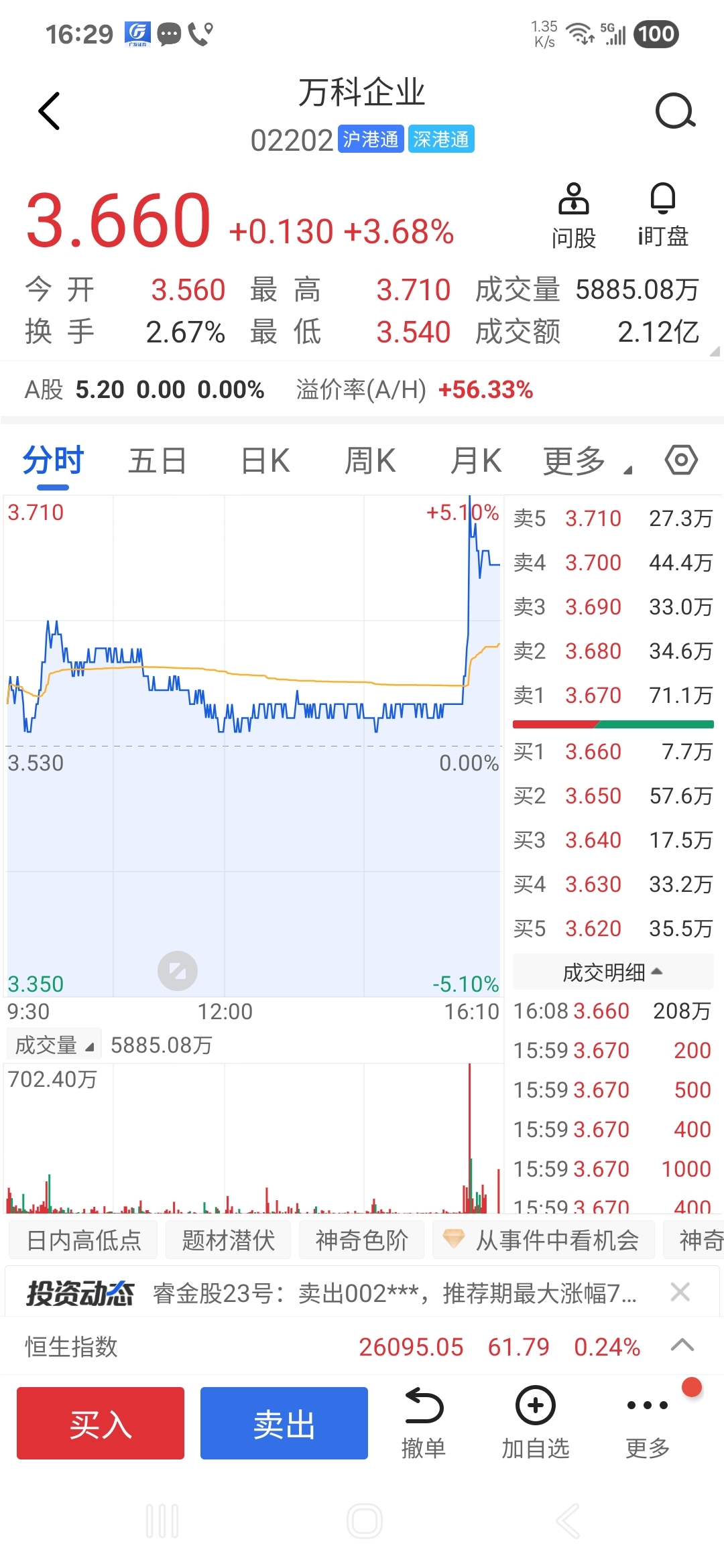 $万 科A(SZ000002)$ 尾盘偷袭,