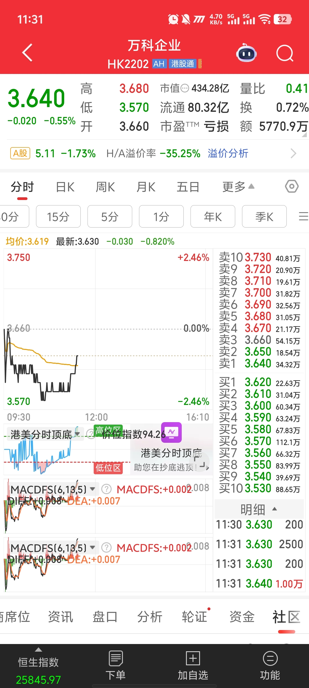 $万 科A(SZ000002)$ 港股跌二个多点拉红了下午反转了。