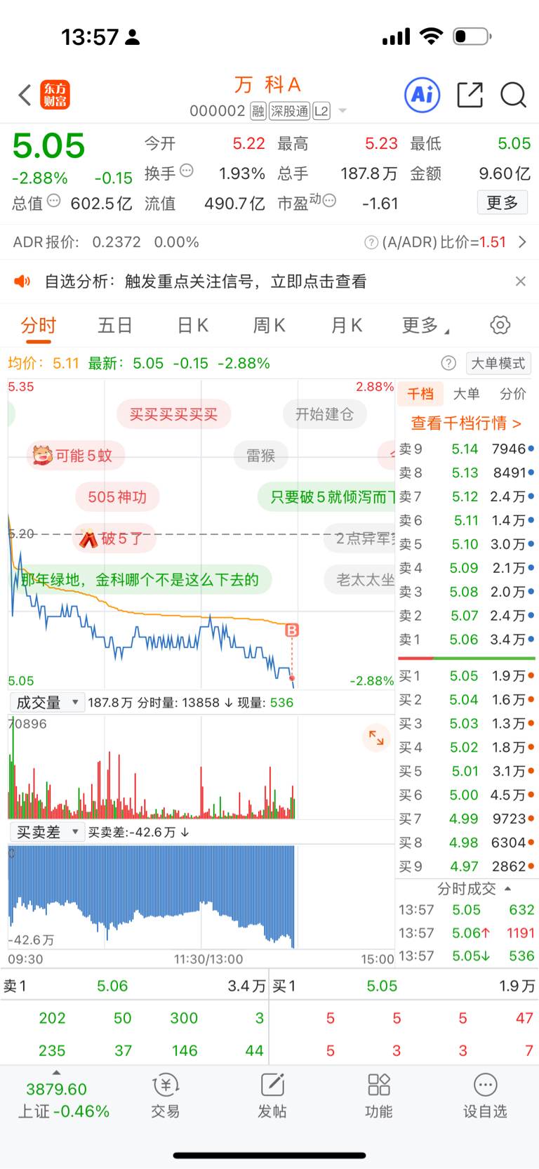 5.06梭哈了,要么翻倍,要么退市,有本事你就继续跌!你看我卖不卖!