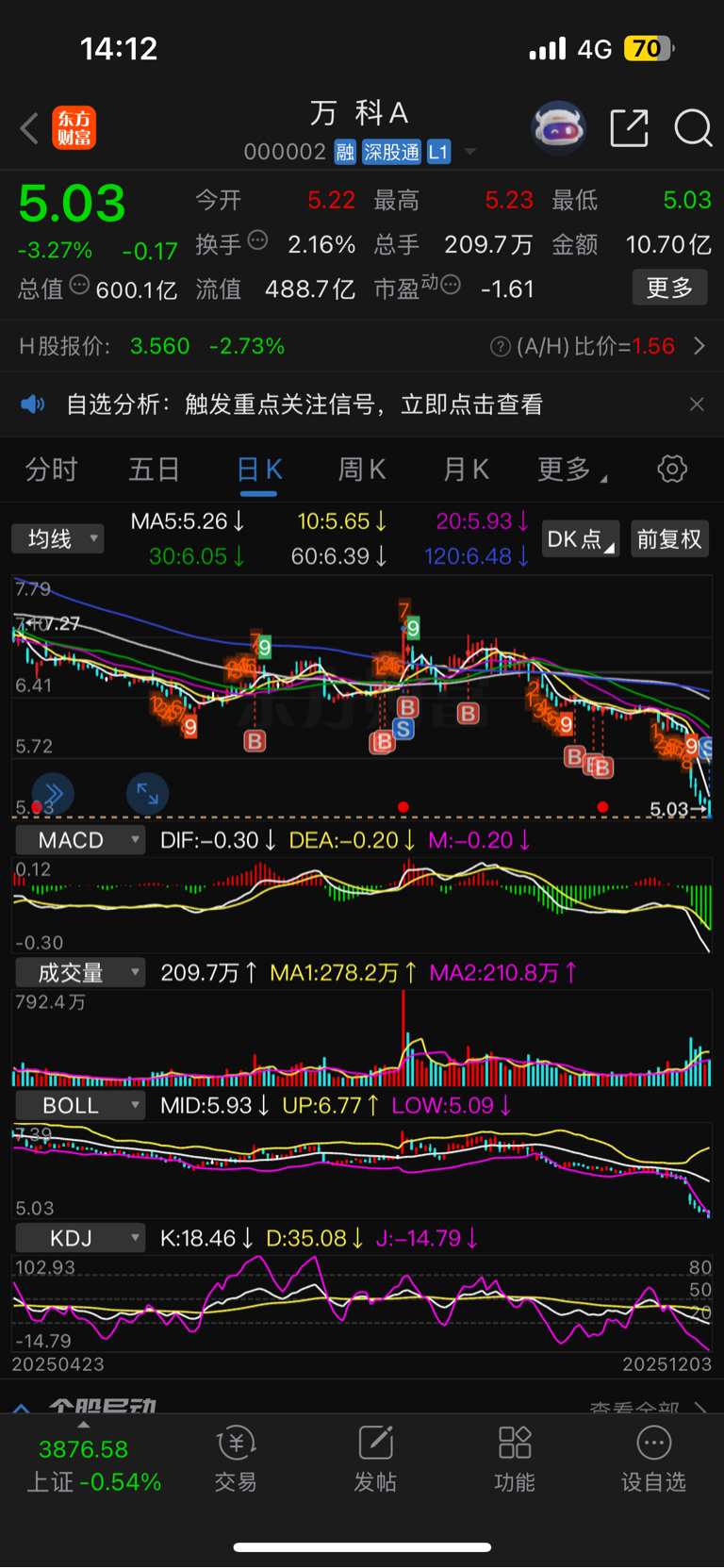 $万 科A(SZ000002)$ 走了亏了整整12万