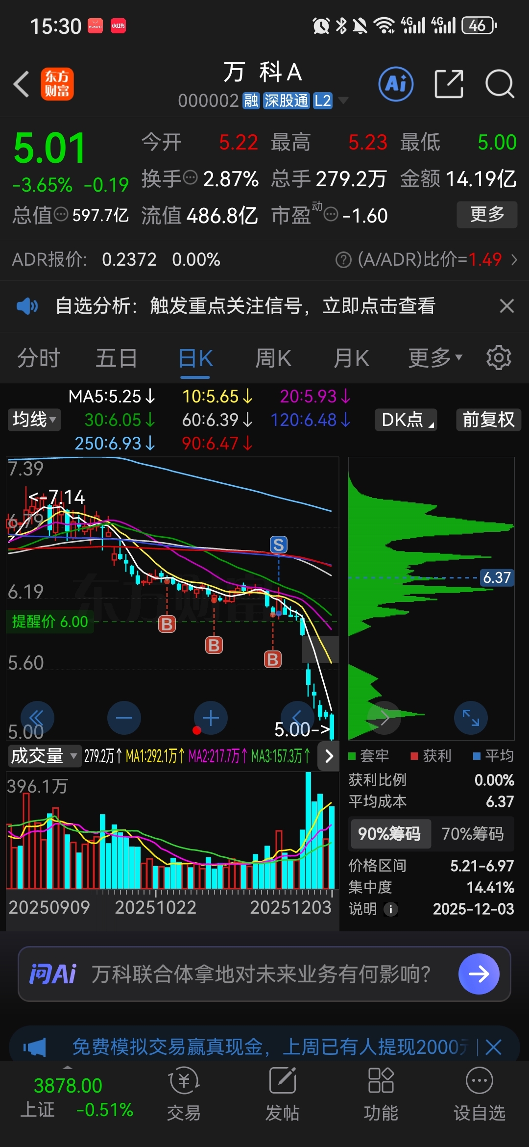 $万 科A(SZ000002)$ 不知道底部在哪里,已清仓,持续关注