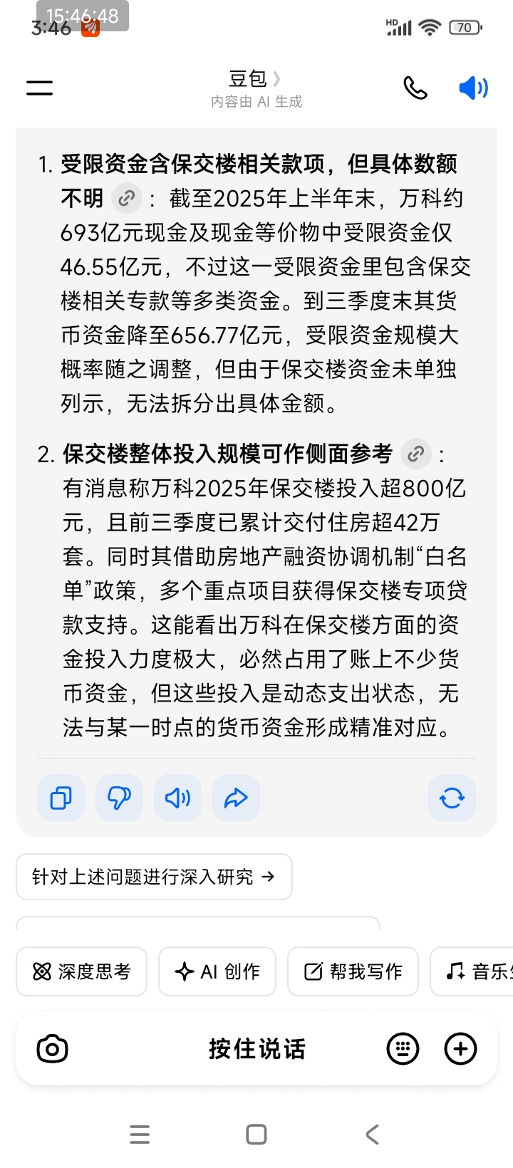 $万 科A(SZ000002)$ 为什么跟报道的不一样,孰真孰假?我觉得AI应该不懂说谎