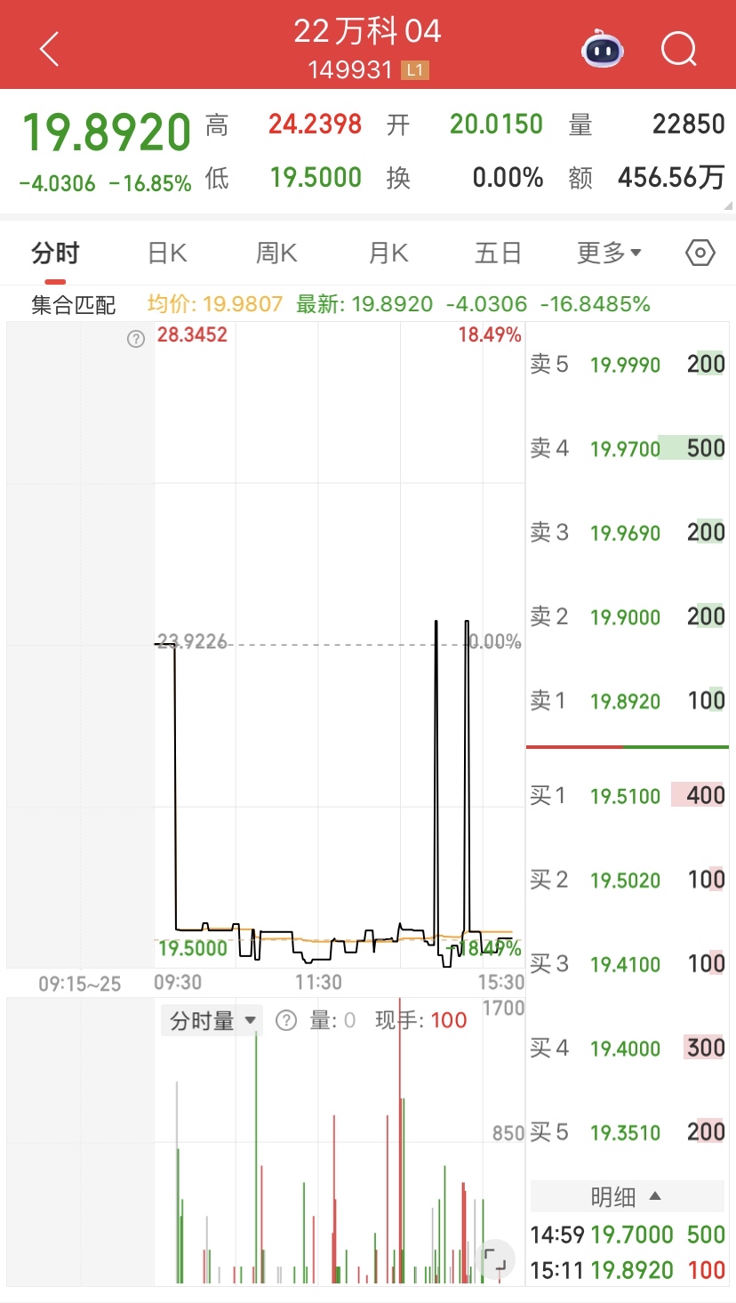 $万 科A(SZ000002)$ 面值100的债跌到20,80%的跌幅,现在就怕12-10号债权人不同意延期,现在拿不到,估计后面打骨折赎回债。