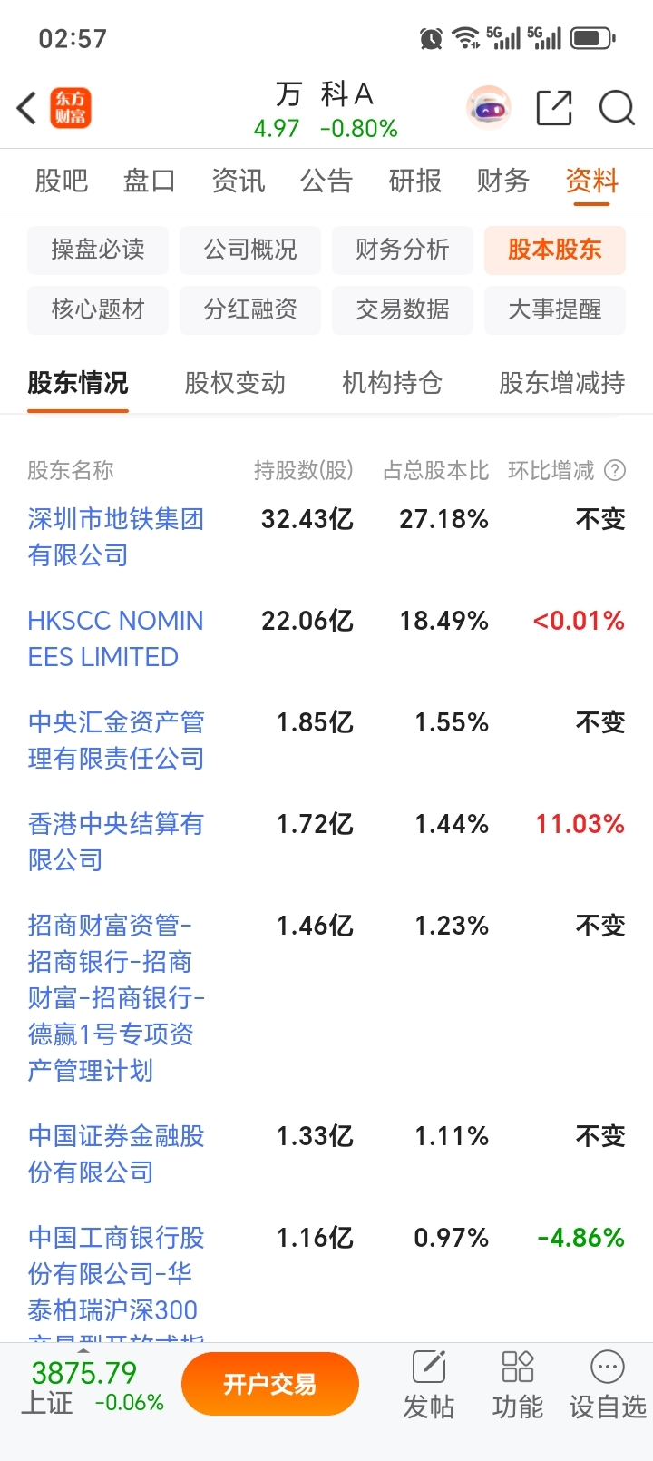 #炒股日记# 小伙伴们总操心万科如何如何,汇金,证金,哪个不被套,比起旺旺队,小散那几手算毛线,杞人忧天