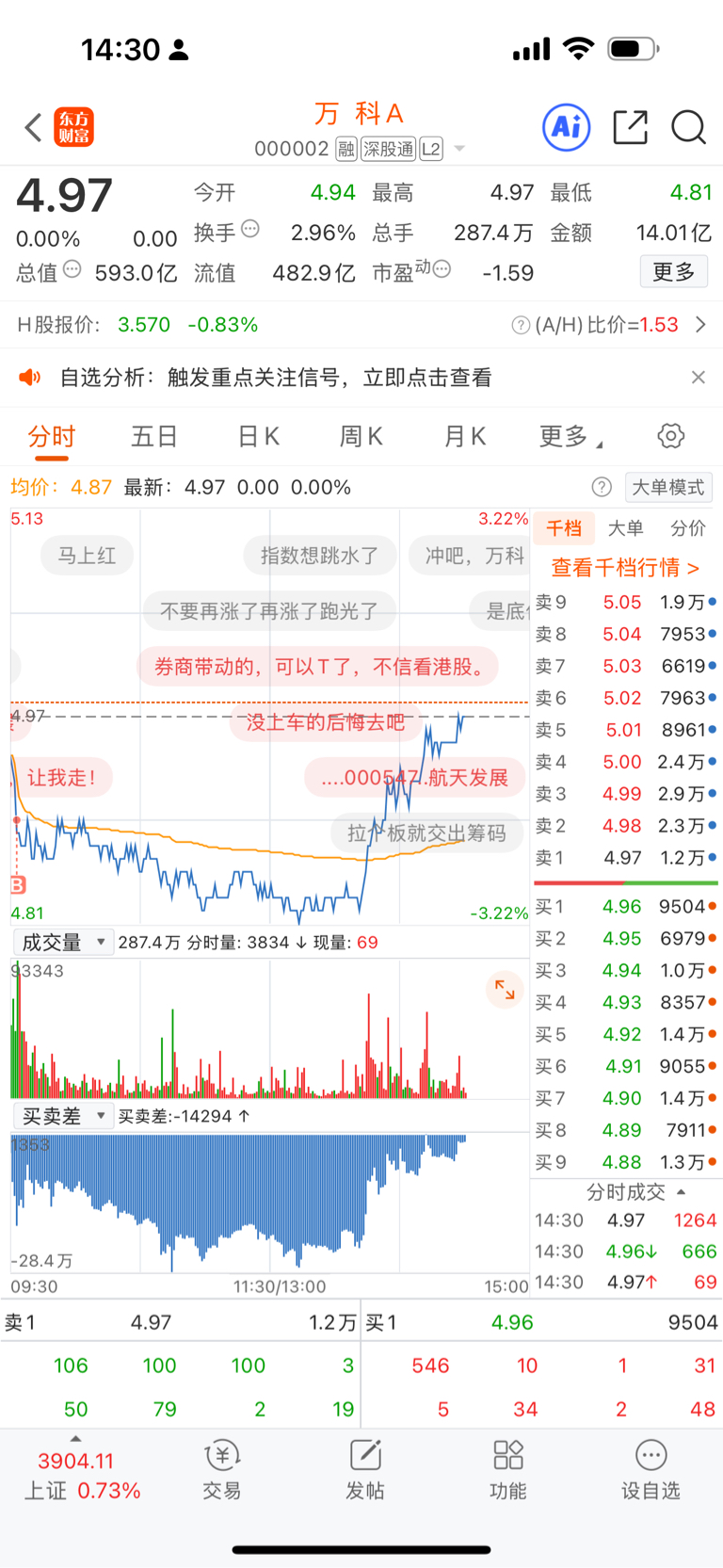 $万 科A(SZ000002)$ 故意砸的深深的,然后反弹上来,让别人心想刚刚跌跌那么低我都没买,现在都涨上来了,现在买不是追高吗?想买在最低点,呵呵,贪心,还有的怕再次回落,现在买入其实性价比也很不错,马上快到我成本线了!继续看戏!