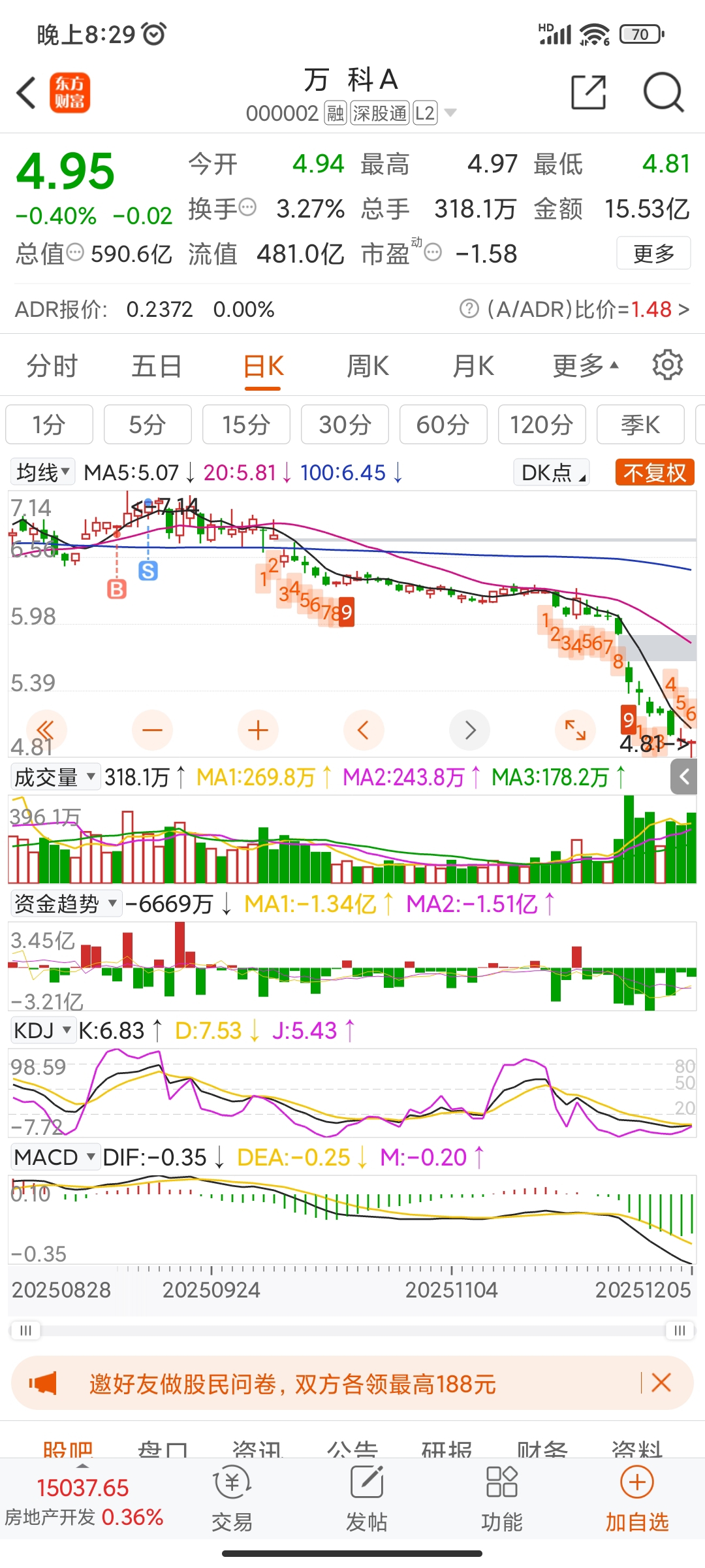 $万 科A(SZ000002)$ 今天来看看,好险啊,还好,当初跑的快,做短线交易