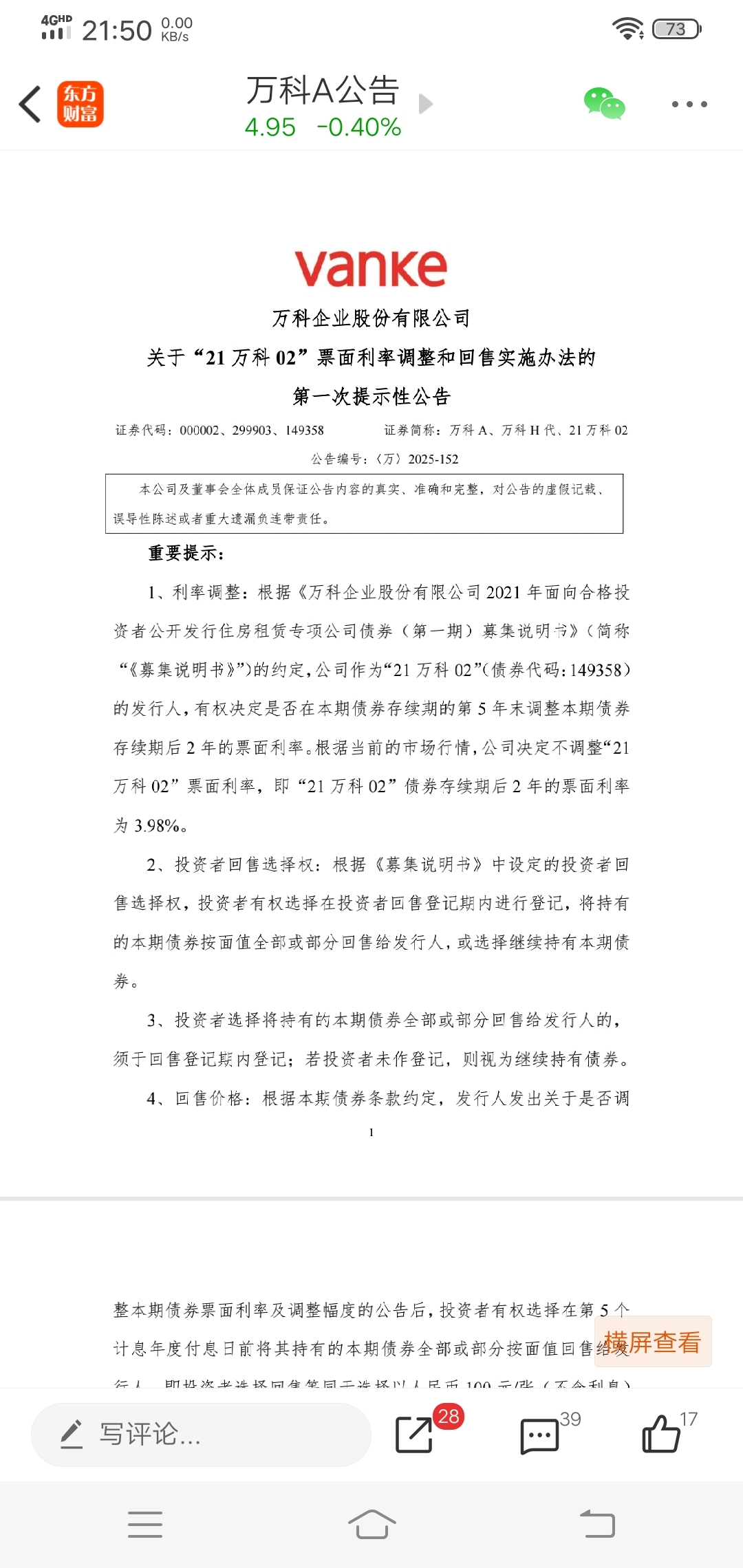 $万 科A(SZ000002)$ 永远不会倒的,我坚信,万科真的有人故意做空的=我先谢谢做空团队,让我买到了最低价(大仓位),我的筹码到手了,万科做空团队倒了:已经发出官方公告,有钱付债券了,可以带动房地产板块大涨雄起$绿地控股(SH600606)$ 等