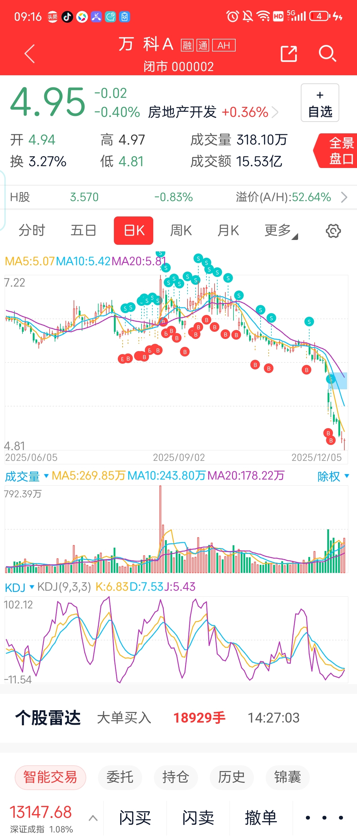 $万 科A(SZ000002)$ 还好跑得快,只亏了一百多万,否则崩盘了